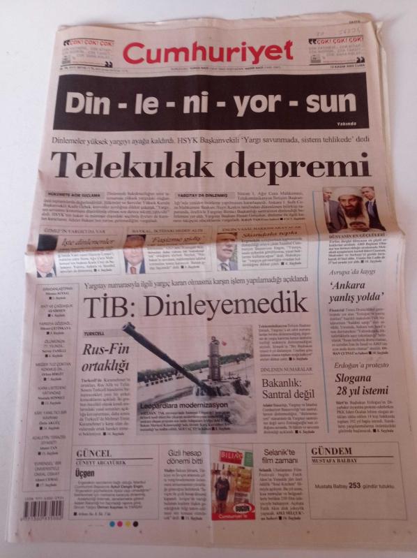 Cumhuriyet Gazetesi - 13 Kasım 2009 - Fenerbahçe'de Roberto Carlos Düğümü - Telekomünikasyon İletişim Başkanı Dinleyemedik - Telekulak Depremi - Dünyanın En Güçlüleri- Rusya Fin Ortaklığı adlı eser, Kitap > Süreli Yayınlar > Gazeteler kategorisinde İkinci El olarak satıştadır.