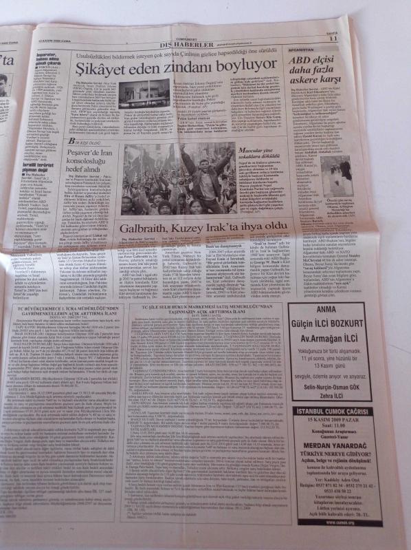 Cumhuriyet Gazetesi - 13 Kasım 2009 - Fenerbahçe'de Roberto Carlos Düğümü - Telekomünikasyon İletişim Başkanı Dinleyemedik - Telekulak Depremi - Dünyanın En Güçlüleri- Rusya Fin Ortaklığı adlı eser Türkçe dilindedir.