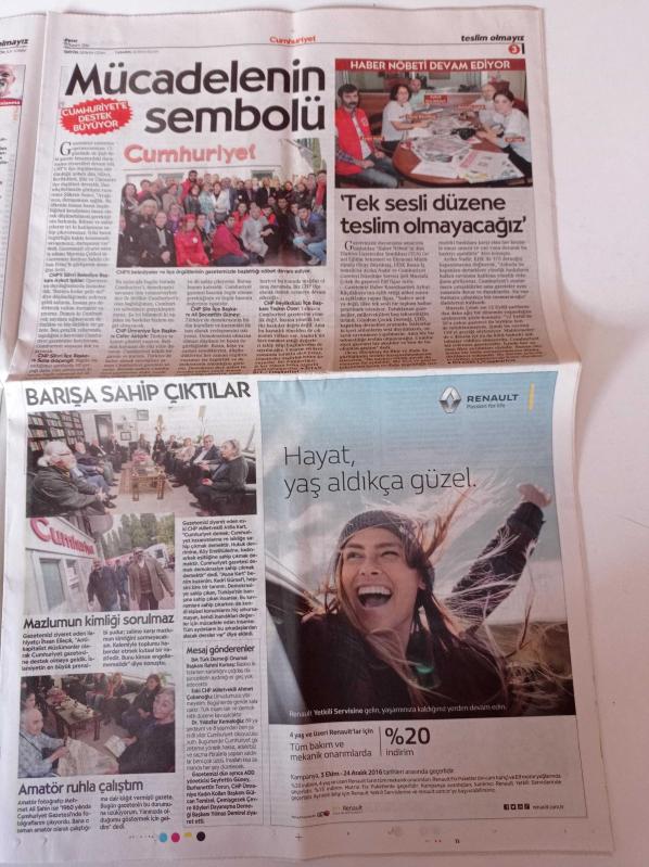 Sayfa Boyutu: 35*56cm Sayfa Sayısı:20 Cumhuriyet Gazetesi Yıpranma, sararmalar, kupon kesiği ve yırtılmalar zamana bağlı olarak görülebilir