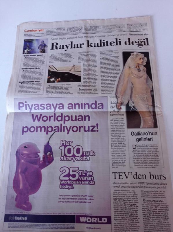 Cumhuriyet Gazetesi - 13 Mart 2009 - Antu.com'dan Tepki Sayfası - Galliano'nun Gelinleri - İnternet Düşmanı Ülkeler - TEV'den Burs - Büyük Buluşma - Darbe Savları İddianamede adlı eser Türkçe dilindedir.