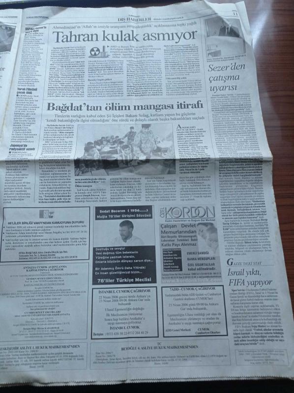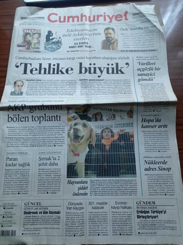 Cumhuriyet Gazetesi - 13 Nisan 2006 - Yüzmede Prestij Kaybettik - Cumhurbaşkanı Ahmet Necdet Sezer İrticanın Kaygı Verici Boyutlara Ulaştığını Söyledi - Ahmet Ümit - Çevre ve Orman Bakanı Pepe Yine Suçladı Ama İsim Açıklamadı - Çernobil Etkisi Hopa'da Kanser Arttı - Doğulu Vekillerle Toplantı Partilileri Kızdırdı - Hayvanlara Şiddet Önlensin - 301. Madde Kalacak - Evrimin Kayıp Halkası adlı eser Türkçe dilindedir.