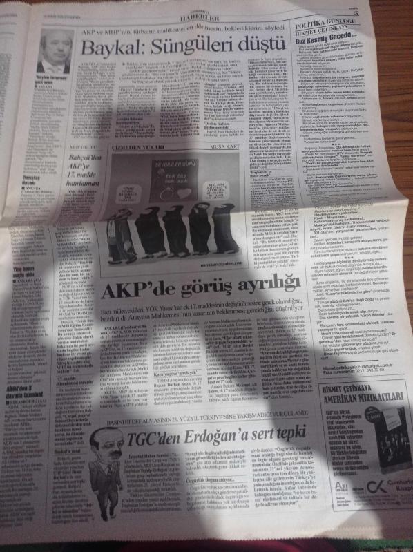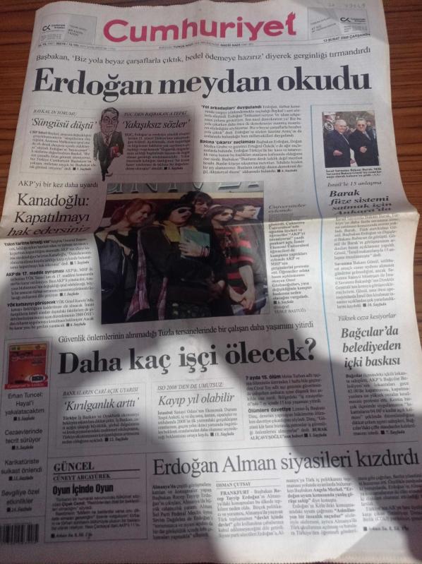 Cumhuriyet Gazetesi - 13 Şubat 2008 - Fenerbahçeli Roberto Carlos Tek Rakibimiz Galatasaray - Hasan Doğan'ın Listesi Hazır - Sıra Dışı Tercihli Müslümanlar Konuştu - Recep Tayyip Erdoğan Meydan Okudu - Sabih Kanadoğlu AKP'ye Kapatılmayı Hak Edersiniz - Bağcılar'da Belediyeden İçki Baskısı - İsrail Savunma Bakanı Barak Füze Sistemi Satmak İçin Ankara'da adlı eser Türkçe dilindedir.