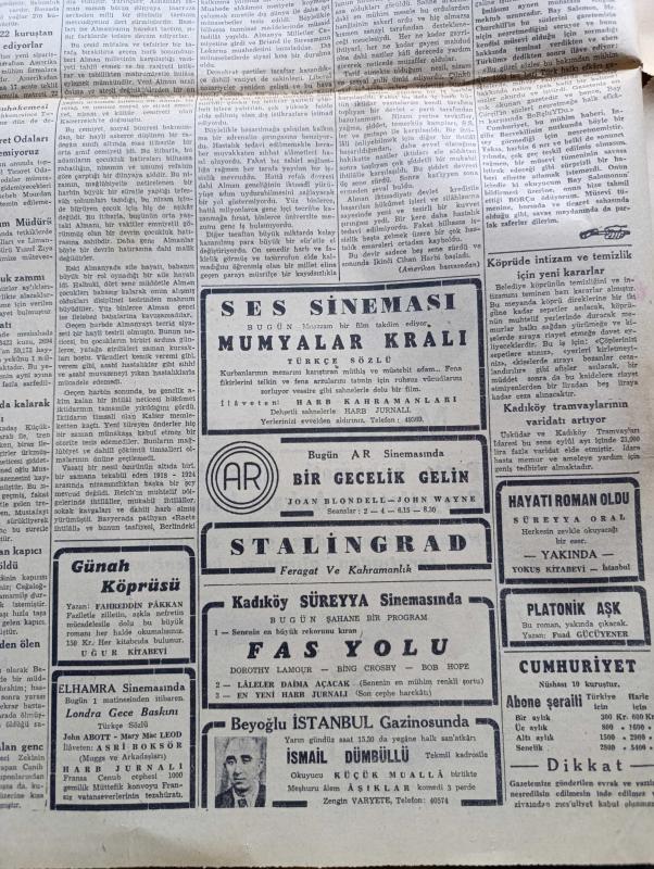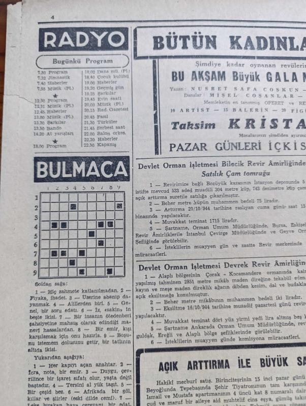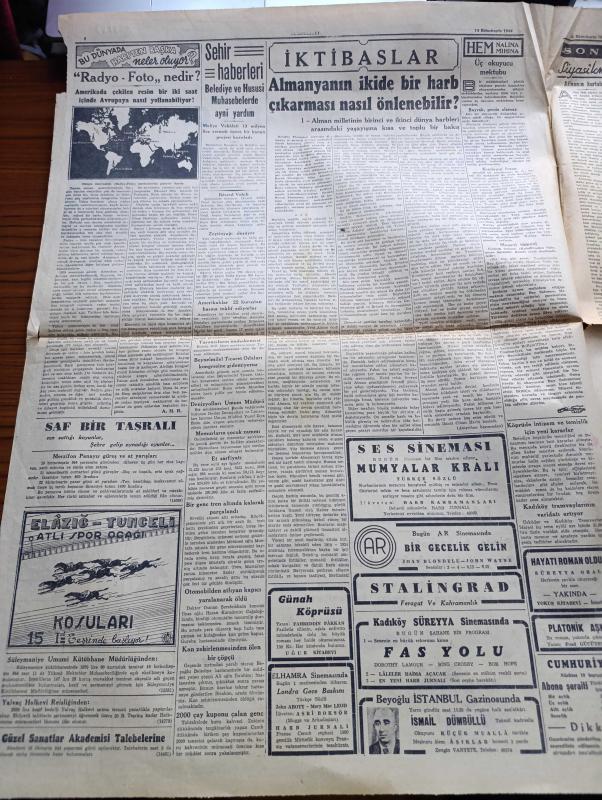 Cumhuriyet Gazetesi - 14 Birinciteşrin (Ekim) 1944 - Moskova'dan İlk Haberler Yaşam Nadir Nadi Köşe Yazısı - Balkanlar İçin İngiliz Rus Görüşmeleri - Achen Şehri Bir Enkaz Yığını Haline Geldi Fotoğraf - Riga Düştü - Atina ve Pire Dün Kurtarıldı - Macaristan'ın Vaziyeti Peşte Hükümeti Mütareke Şartlarını Sovyetlerden Ankara Kanalıyla Sormuş - İstanbul Mebusları Halkı Dinlemeye Başladılar - İspanya'da Karışıklık Devam Ediyor - Franco Hükümeti - Bu Dünyada Harpten Başka Ne Oluyor - Radyo Foto Nedir - Almanya'nın İkide Bir Harp Çıkarması Nasıl Önlenebilir - Mumyalar Kralı Ses Sinemasında - İsmail Dümbüllü Beyoğlu İstanbul Gazinosunda - Elazığ Tunceli Atlı Spor Ocağı Koşuları - Atina'nın Kurtuluşu Yazan Ömer Rıza Doğrul Köşe Yazısı - Bir Gecelik Gelin Bugün Ar Sinemasında - Askeri Vaziyet Yazan Emekli General H. Emir Erkilet Yazı Dizisi - Fındıkçıların Derdi Yazan Burhan Felek Köşe Yazısı - Churchill Amerika Hesabına Söz Söylemeye Salahiyetli Mi - Mualla Gökçay Her Akşam Maksimde - Borsa, Yunus Nadi tarafından kaleme alınmıştır. Cumhuriyet Gazetesi - 14 Birinciteşrin (Ekim) 1944 - Moskova'dan İlk Haberler Yaşam Nadir Nadi Köşe Yazısı - Balkanlar İçin İngiliz Rus Görüşmeleri - Achen Şehri Bir Enkaz Yığını Haline Geldi Fotoğraf - Riga Düştü - Atina ve Pire Dün Kurtarıldı - Macaristan'ın Vaziyeti Peşte Hükümeti Mütareke Şartlarını Sovyetlerden Ankara Kanalıyla Sormuş - İstanbul Mebusları Halkı Dinlemeye Başladılar - İspanya'da Karışıklık Devam Ediyor - Franco Hükümeti - Bu Dünyada Harpten Başka Ne Oluyor - Radyo Foto Nedir - Almanya'nın İkide Bir Harp Çıkarması Nasıl Önlenebilir - Mumyalar Kralı Ses Sinemasında - İsmail Dümbüllü Beyoğlu İstanbul Gazinosunda - Elazığ Tunceli Atlı Spor Ocağı Koşuları - Atina'nın Kurtuluşu Yazan Ömer Rıza Doğrul Köşe Yazısı - Bir Gecelik Gelin Bugün Ar Sinemasında - Askeri Vaziyet Yazan Emekli General H. Emir Erkilet Yazı Dizisi - Fındıkçıların Derdi Yazan Burhan Felek Köşe Yazısı - Churchill Amerika Hesabına Söz Söylemeye Salahiyetli Mi - Mualla Gökçay Her Akşam Maksimde - Borsa adlı eser Türkçe dilindedir.