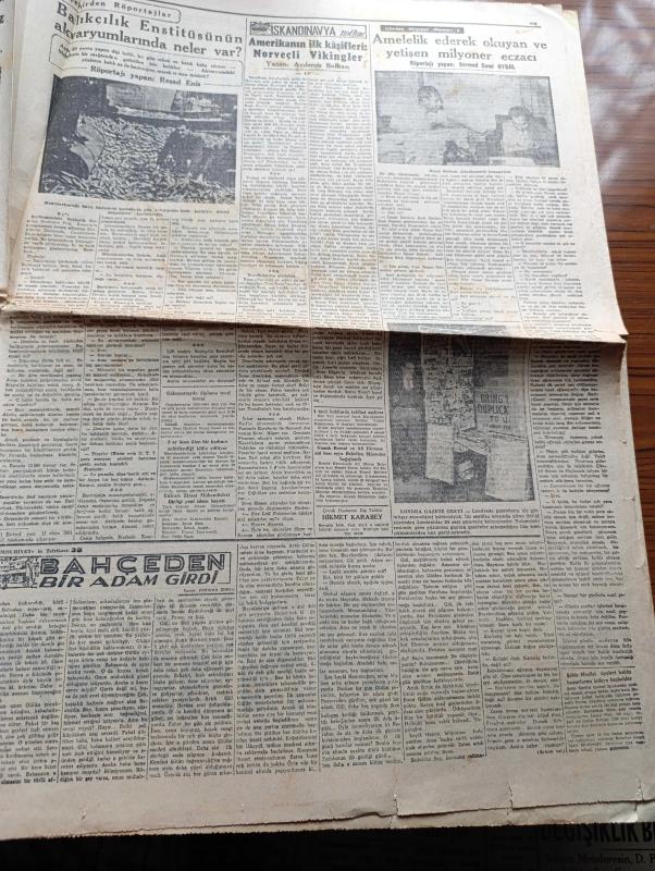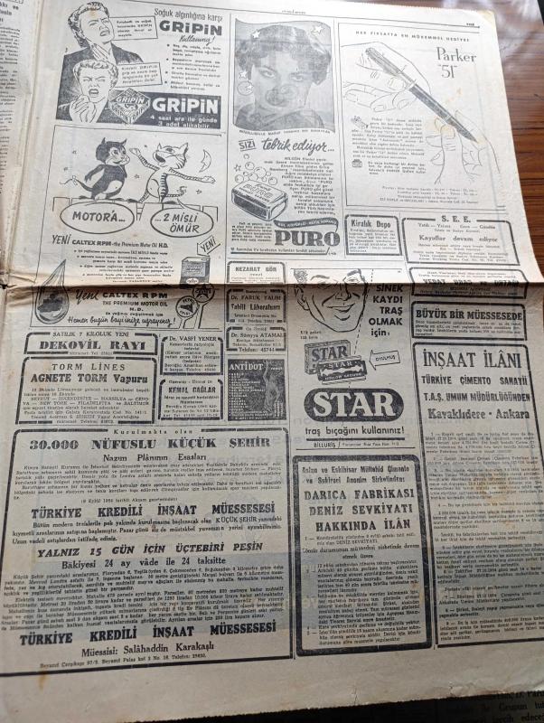Cumhuriyet Gazetesi - 14 Ekim 1954 - Hububat Alımı Çok Az Çiftçi Buğdayını Gizliyor - Ticaret Vekili Zühtü Velibeşe Gene Makale Yazdı - Sümerbank Alım Satım Müessesi Müdürü Faruk Gönel Dünkü Toplantıda Konuşurken Fotoğraf - Yugoslav Milli Takımı Dün Gece İlan Edildi - Yakup Kadri Karaosmanoğlu Zoraki Diplomat İsimli Yeni Eserini Anlatıyor Fotoğraf - Ses Tiyatrosunda 7 Sanatkar Dün Kömür Gazından Zehirlendi - Ankara Bayramı Münasebetiyle Reisicumhur Celal Bayar'ı Ziyaret Eden Küçük Ankara Efeleri - 1001 Kuyu Yazan Va Nü Yazı Dizisi - Fransa Uçan Daire Memleketi Oldu - Şehir Tiyatrosu Temsilleri Rağbet Gördü - Milli Maça Dair Gündüz Kılıç'ın Demeci - Bu Haftaki Mühim Futbol Karşılaşması Fenerbahçe Beşiktaş - Bahçeden Bir Adam Girdi Yazan Perihan Zorlu Yazı Dizisi - Değerli Sanatkar Sabite Tur Gülerman Sarışın Bomba Gönül Yazar - Turkuaz Aile Saz Salonunda - Resimli Romanımız Doktorun Aşkı Yazan George Simenon - Gripin - Puro Tuvalet Sabunu - Caterpillar Traktör adlı eser, Kitap > Süreli Yayınlar > Gazeteler > Türkiye > Genel > Günlük kategorisinde İkinci El olarak satıştadır.