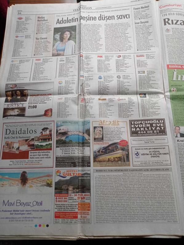 Sayfa Boyutu: 38*56cm Sayfa Sayısı: 16 Cumhuriyet Gazetesi Yıpranma, sararmalar, kupon kesiği ve yırtılmalar zamana bağlı olarak görülebilir
