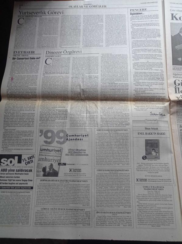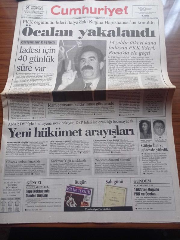 Cumhuriyet Gazetesi - 14 Kasım 1998 - Yunus Nadi - İlhan Selçuk - Toktamış Ateş - Ataol Behramoğlu - Abdullah Öcalan Yakalandı - İstenmeyen Hakemler Krizi - Voleybolda Rusya'ya Yenildik - PKK Örgütünün Lideri İtalya'daki Regina Hapishanesi'ne Konuldu - Melih Gökçek Serbest Bırakıldı - Korkmaz Yiğit Tutuklandı - İdam Cezasının Kaldırılması Gündemde adlı eser Türkçe dilindedir.