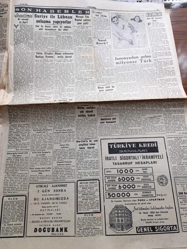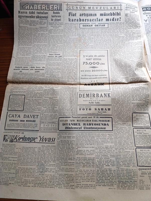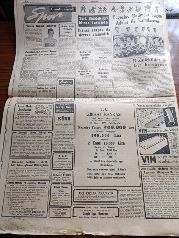 Cumhuriyet Gazetesi - 14 Ocak 1956 - Nasıl Etsek Yazan Nadir Nadi Köşe Yazısı - Millet Meclisinde Dünkü Fırtınalı Toplantı - 6 7 Eylül Hadiseleri Dolayısıyla Başbakan Adnan Menderes Hakkında Meclis Tahkikatı Açılmasını İsteyen Takrir Büyük Gürültüler İçinde Görüşüldü ve Neticede Reddedildi - Demokrat Parti Ve Hürriyet Partisi Liderleri Dün İlk Defa Çatıştılar - Modern Bir Dökümhane Kuruluyor - Amerika'da Hiç Bir Resmi Okulda Din Dersi Yok - Kırlangıç Yuvası Yazan Taylor Caldwell Yazı Dizisi - İtalyan Filarmoni Orkestrası Dün Geldi - Suriye İle Lübnan Anlaşma Yapıyorlar - Divan Oteli Bu Gece Açılıyor - Japonya'dan Gelen Milyoner Türk Feyzurahman Gizatullis Gözyaşı Döktü - Resimli Romanımız Çalınan Tabanca Yazan George Simenon - Piyanist Fezal Üstar'ın Dün Akşamki Konseri - Yalçın Granit Dönüyor - Yugoslav Radniçki Bugün Adalet İle Karşılaşıyor - Beşiktaş Ve Fenerbahçe Gittiler - Beşiktaş Kız Basketbol Takımı Kurdu - Alman Basını Fenerbahçeli Feridun Buğeker'i Övüyor -Balkan Kros Parkuru adlı eser, Kitap > Süreli Yayınlar > Gazeteler > Türkiye > Genel > Günlük kategorisinde İkinci El olarak satıştadır.