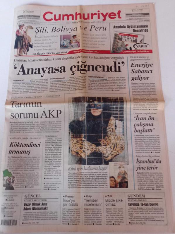 Cumhuriyet Gazetesi - 14 Şubat 2006 - TJK Başkanı Umut Tamer Hipodromda Şike Olmaz - Nihat Özdemir - Anayasa Çiğnendi- PETA Kürk İçin Katliama Hayır - İran Uranyum Zenginleştirme İçin Ön Çalışma Başlattı - Özdemir İnce'ye Fransa'dan Şiir Ödülü adlı eser Türkçe dilindedir.