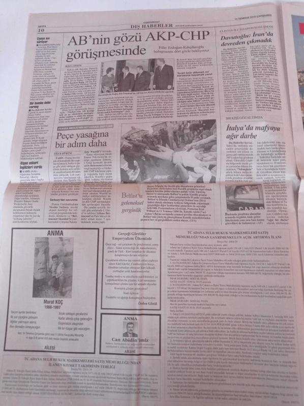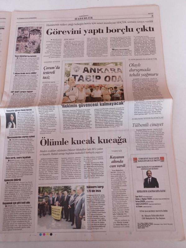 Sayfa Boyutu: 35*56cm Sayfa Sayısı:20 Cumhuriyet Gazetesi Yıpranma, sararmalar, kupon kesiği ve yırtılmalar zamana bağlı olarak görülebilir