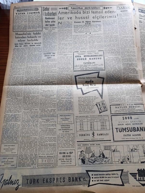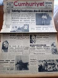 Cumhuriyet Gazetesi - 15 Ağustos 1957 - İşbirliği Konferansı Dün De Devam Etti - Toplantı Sonunda İsmet İnönü İyi Gidiyoruz Dedi - Yakup Kadri Karaosmanoğlu Fuad Arna Ve Kasım Gülek Toplantı Çok İyi Gidiyor Dedi - İsmet İnönü'nün Garajına Saklanan Sivil Polis - Bursa'nın İrticai Hadise'nin Mesulleri Mahkeme Huzurunda - Molotof İntihar Mı Etti - Batı Trakya'da Türk Köylüsü Eziliyor - Kıbrıs Türkleri Arasında 15 Gün Röportajı Yapan Ömer Sami Coşar Yazı Dizisi - Müftü Dana - Doktor Fazıl Küçük - Mussolini'nin Hakiki Hatıraları Bulundu Ve Tekrar Kayboldu - Tarabyadaki İnşa Halindeki Oteli Emekli Sandığı Aldı - 7. Kore Değiştirme Birliğimiz Geldi - İstanbul'un Suyu Sapanca Gölünden Sağlanacak - Başbakan Adnan Menderes İzmir Fuarına Gidiyor - Fay Temizleme Tozu - Krem Pertev - Fenerbahçeliler Cemiyetinden İstifa Etmeyen Fenerliler Haysiyet Divanına Verilecek - Akdeniz Yüzme Yarışları - Beşiktaş Yarın Ankara'ya Gidiyor - Basketbol Milli Takımı İtalya Milli Takımı İle Oynayacak - Pan American adlı eser, Kitap > Süreli Yayınlar > Gazeteler > Türkiye > Genel > Günlük kategorisinde İkinci El olarak satıştadır.