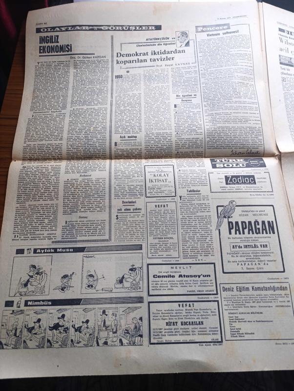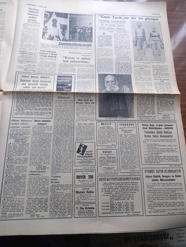 Cumhuriyet Gazetesi - 15 Kasım 1967 - Dış Ticarette Büyük Laflar Yazan Ecvet Güresin Başmakale - Maraş'ta 2 Alman Turisti Öldürüldü - Vehbi Koç Başbakanla Konuştuktan Sonra Buzdolabı Fiyatında İndirim Artış Olmaz Dedi - Rauf Denktaş Kıbrıs'a Girmek İçin U Thant'a Başvuruyor - Piyasadaki Bütün Köseleler Bozuktur Damgası Taşıyor - Emekli Albay Sadettin Suhataç Başkanlığında Kurulan Demokrat Birlik Partisi Programını Açıkladı - Vietnam Salhanesi Yazan İlhan Selçuk Köşe - İngiltere Başbakanı Wilson Ortak Pazara Acil Çağrıda Bulundu - Ho Şi Minh Lenin Nişanını Zaferi Kazandıktan Sonra Alacağım Dedi - 50. Yıldönümünde 1917 İhtilalinin Hikayesi Çizgi Roman - Ernest Hemingway'in Gözüyle Atatürk Türkiyesi Derleyen Mehmet Barlas Yazı Dizisi - İtalyan Lisesinde Atatürk Büstü Açıldı - Ulvi Uraz Tiyatrosu - Sophia Loren Yeni Filminin Galasına Şahane Bir Kıyafet Ve Merasimle Geldi - Deli Dolu Oyunundan Bir Sahne - Aziz Basmacı - Kenan Büke - Tek Şampiyon Ahmet Ayık Delhi'de Zorla 5. Olabildik adlı eser, Kitap > Süreli Yayınlar > Gazeteler > Türkiye > Genel > Günlük kategorisinde İkinci El olarak satıştadır.