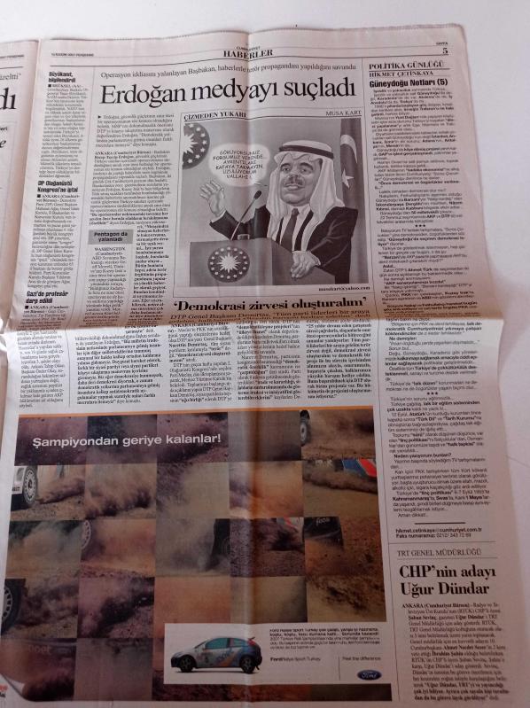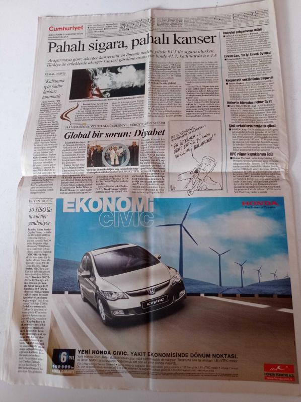 Sayfa Boyutu: 35*56cm Sayfa Sayısı:20 Cumhuriyet Gazetesi Yıpranma, sararmalar, kupon kesiği ve yırtılmalar zamana bağlı olarak görülebilir