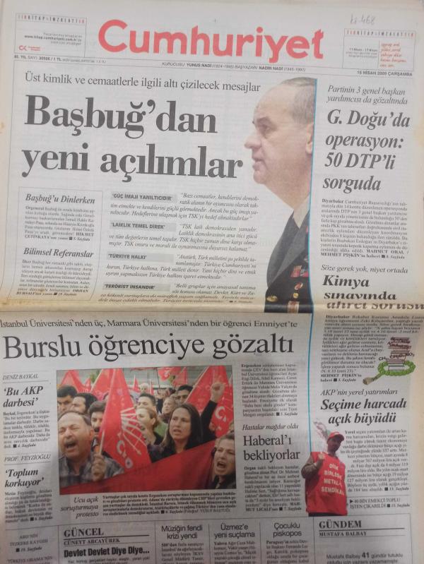 Cumhuriyet Gazetesi - 15 Nisan 2009 - Mehmet Pişkin - Turhan Selçuk - Hatice Tuncer - Sertaç Eş - Mahmut Oral - Nilüfer Narlı - Mustafa Su - Seda Sayan - Yıpranma, Sararma, Yırtılmalar Zamana Bağlı Olarak Görülebilir.