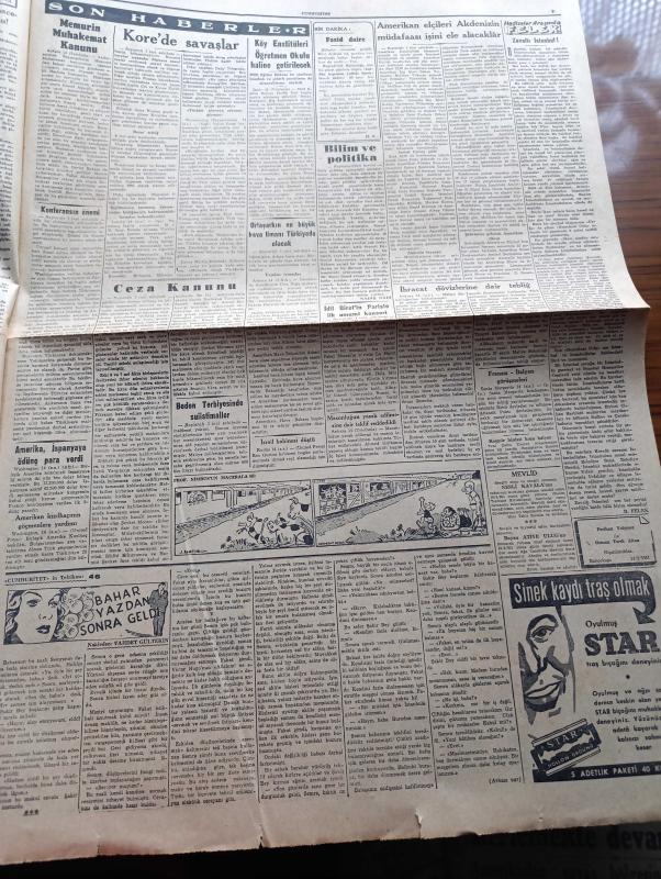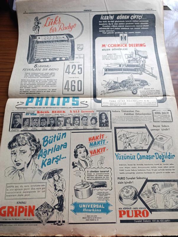 Cumhuriyet Gazetesi - 15 Şubat 1951 - Bilim Ve Politika Yazan Nadir Nadi Köşe Yazısı - Amerikan Elçileri Akdenizin Müdafaası İşini Ele Alacaklar - Bütçe Komisyonunun Hükümetten Dilekleri - Ortaşarkın En Büyük Hava Limanı Türkiye'de Olacak - İdil Biret'in Paris'te İlk Umumi Konseri - Kore'de Savaşlar - Tanınmış Film Rejisörü Faruk Kenç'inb Başına Gelenler - Kore Yaralılarına Gazetemiz Vasıtasıyla Yollanan Yemişler Fotoğraf - Beyaz Ruslar Kızıllaşıyor Mu Yazan Mirza Bala Köşe Yazısı - Latin Amerika İntibaları Yazan Fuad Carım Yazı Dizisi - Bahar Yazdan Sonra Gelir Nakleden Vahdet Gültekin - Köy Enstitüleri Öğretmen Okulu Haline Getirilecek - Amerika İspanya'ya Ödünç Para Verdi - Masonluğun Yasak Edilmesine Dair Teklif Reddedildi - Kadın Gazeteci Lil'in Maceraları Çizgi Roman - Bu Akşam Yapılacak Boks Karşılaşmaları - Bu Hafta Yapılacak Basketbol Ve Voleybol Maçları - Samsun'da Ziraat Koleji Kurulacak - İstanbul Ankara Radyosu Programı - Siera Radyoları - Mazon Meyva Tuzu - Pa Ro Mama adlı eser, Kitap > Süreli Yayınlar > Gazeteler > Türkiye > Genel > Günlük kategorisinde İkinci El olarak satıştadır.