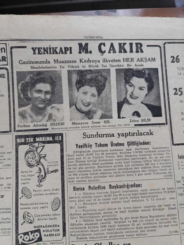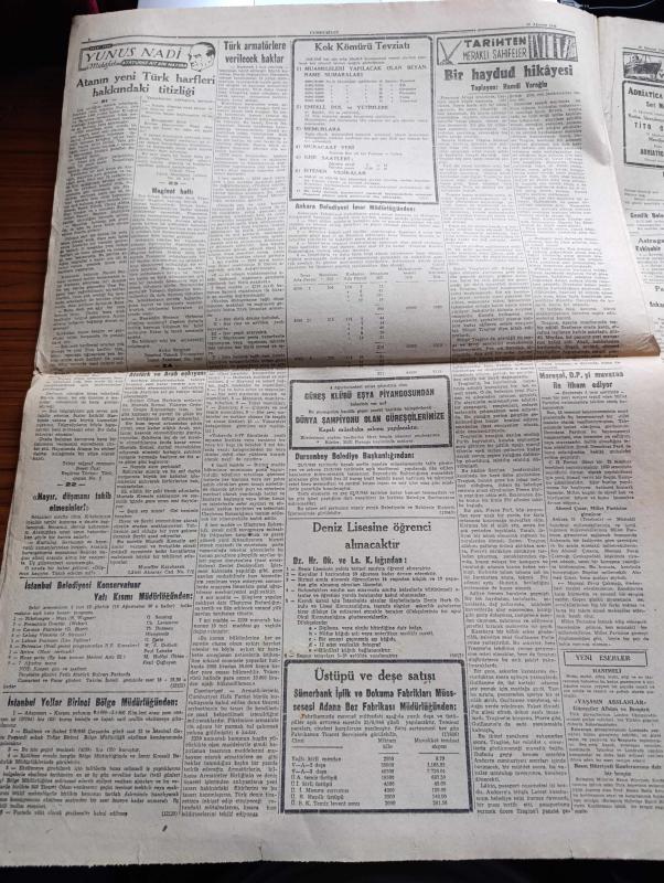 Cumhuriyet Gazetesi - 16 Ağustos 1948 - Deniz Ulaştırma İşlerimizin Islahı Yazan Abidin Daver Köşe Yazısı - Rusya Doğu Avrupa'da Tekrar Harekete Geçiyor - Pragda Kadınların Komünizm Aleyhinde Yaptıkları Nümayiş Fotoğraf - Moskova'da Bugün Yeni Bir Toplantı Daha Yapılıyor - Olimpiyatları 1,5 Milyon Kişi Seyretti - Yabancı Takımlar İngiltere'de 300 Ton Yiyecek Bıraktılar - Millet Partisi Fahri Başkanı Mareşal Fevzi Çakmak Demokrat Partiyi Muvazaa İle İtham Ediyor - Türk Armatörlere Verilecek Haklar - Demokrat Partililerin Yeni Mitingi - Röntgen Filmi Bollaşıyor - Müstakil Hindistan Ve Pakistan Devletleri Yazan Ömer Rıza Doğrul - Dar Yol Yazan Peride Celal Yazı Dizisi - 13 Sene Sonra Yazan Burhan Felek Köşe Yazısı - 1948 1949 Yunus Nadi Mükafatı Atatürk'e Ait Bir Hatıra - Perihan Altındağ Sözeri Müzeyyen Senar Işıl Ve Zehra Bilir Yenikapı M. Çakır Gazinosunda - Tarihten Meraklı Sahifeler Yazan Hamdi Varoğlu - Bugünkü Radyo Programı - Bulmaca - Çapamarka - U. S. Royal Traktör Lastiği, Yunus Nadi tarafından kaleme alınmıştır. Cumhuriyet Gazetesi - 16 Ağustos 1948 - Deniz Ulaştırma İşlerimizin Islahı Yazan Abidin Daver Köşe Yazısı - Rusya Doğu Avrupa'da Tekrar Harekete Geçiyor - Pragda Kadınların Komünizm Aleyhinde Yaptıkları Nümayiş Fotoğraf - Moskova'da Bugün Yeni Bir Toplantı Daha Yapılıyor - Olimpiyatları 1,5 Milyon Kişi Seyretti - Yabancı Takımlar İngiltere'de 300 Ton Yiyecek Bıraktılar - Millet Partisi Fahri Başkanı Mareşal Fevzi Çakmak Demokrat Partiyi Muvazaa İle İtham Ediyor - Türk Armatörlere Verilecek Haklar - Demokrat Partililerin Yeni Mitingi - Röntgen Filmi Bollaşıyor - Müstakil Hindistan Ve Pakistan Devletleri Yazan Ömer Rıza Doğrul - Dar Yol Yazan Peride Celal Yazı Dizisi - 13 Sene Sonra Yazan Burhan Felek Köşe Yazısı - 1948 1949 Yunus Nadi Mükafatı Atatürk'e Ait Bir Hatıra - Perihan Altındağ Sözeri Müzeyyen Senar Işıl Ve Zehra Bilir Yenikapı M. Çakır Gazinosunda - Tarihten Meraklı Sahifeler Yazan Hamdi Varoğlu - Bugünkü Radyo Programı - Bulmaca - Çapamarka - U. S. Royal Traktör Lastiği adlı eser Türkçe dilindedir.