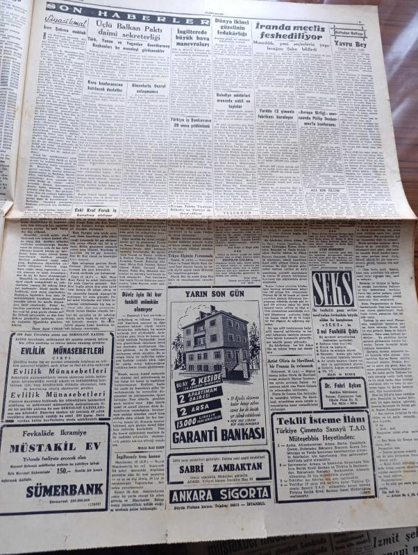 Cumhuriyet Gazetesi - 16 Ağustos 1953 - Yunanistan'da Zelzele Durdu Fotoğraf - Yeni Harcırah Kanunu Tasarısının Esasları - Yurtta 12 Çimento Fabrikası Kuruluyor - CHP'nin Mitingi Fotoğraf - Sabık Ürdün Kralı Tallal İstanbul'a Geldi - Boksör Garbis Taki'ye Galip Geldi - Kore Konferansına Katılacak Devletler - Kore'de Hürriyete Kavuşan Erler Bayrağımızı Öpüyor Fotoğraf - Doğuda İnanılmaz Şeyler Gördüm Röportajı Yapan Yaşar Kemal Yazı Dizisi - İstiklal Caddesi Asfaltlanıyor - Diyanet İşleri Başkanı Eyüp Sabri Hayırlıoğluna İki Ay İzin Verildi - Pazar Konuşmaları Yazan Bedri Rahmi Eyüboğlu - Seks'in 2. Fasikülü Çıktı - İran'da Meclis Feshediliyor - Safiye Ayla Çiftesaraylar Bahçesinde - Akdeniz Kupası Yüzme Yarışları - Fenerbahçe Beyoğluspor İle Karşılaşacak - Topkapı Sarayında Tarihi Odalar Yazan Haluk Yusuf Şehsuvaroğlu - Meraklı Resimler - Perihan Sözeri Konseri - Üstad Münir Nurettin Selçuk Konseri Küçük Çiftlik Parkında - Hoover Çamaşır Makinesi adlı eser, Kitap > Süreli Yayınlar > Gazeteler > Türkiye > Genel > Günlük kategorisinde İkinci El olarak satıştadır.