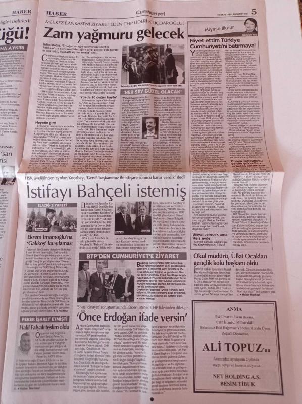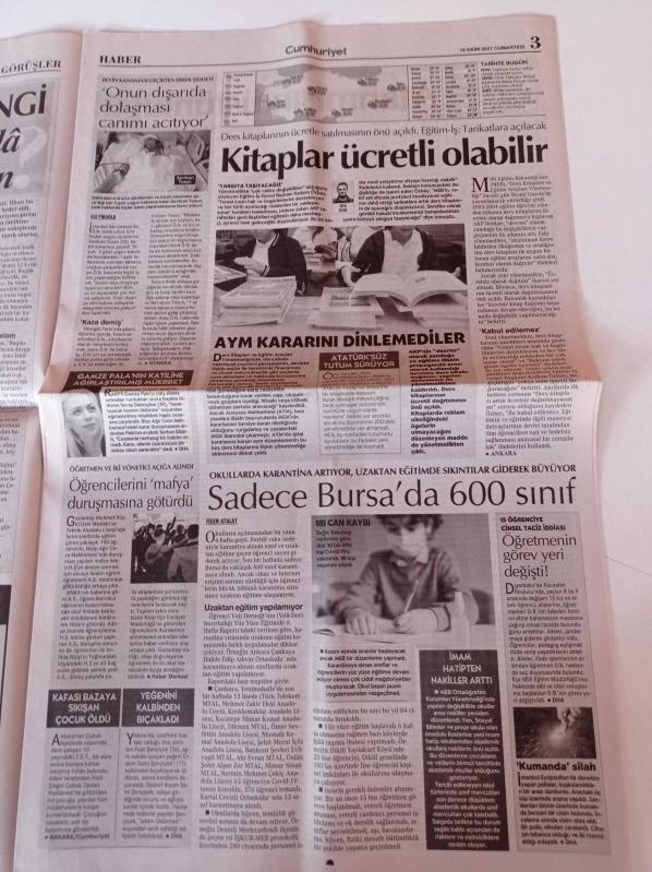 Cumhuriyet Gazetesi - 16 Ekim 2021 - Mesut Özil - Trabzonspor Başkanı Ahmet Ağaoğlu - Kapadokya'da Renkli Maraton - Kemal Kılıçdaroğlu'ndan Merkez Bankası Ve Savcılık Hamleleri - Taliban Amerikan Otelinde - Kuş Türleri Tehdit Altında - Bedava Kitap Dönemi Bitiyor adlı eser Türkçe dilindedir.
