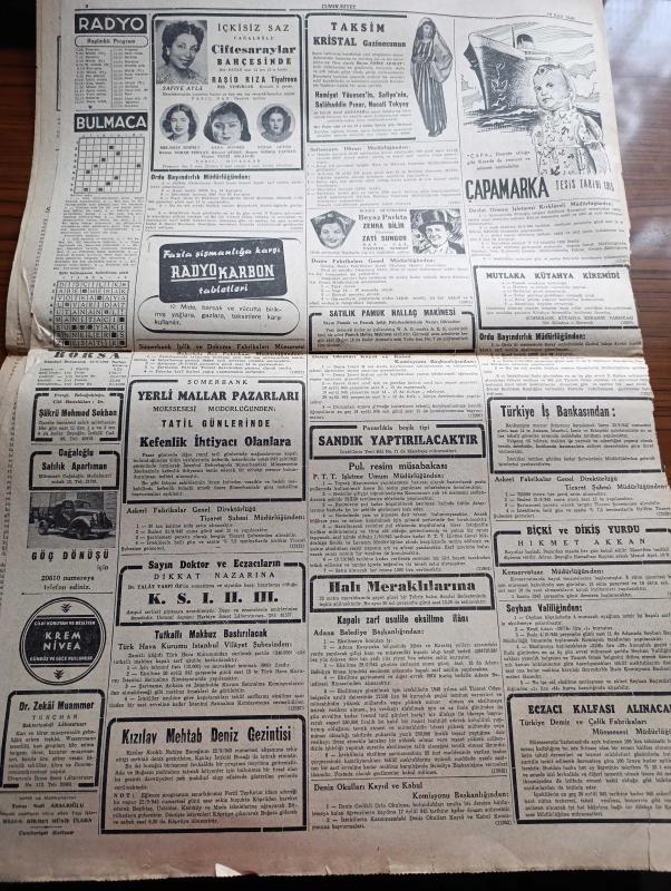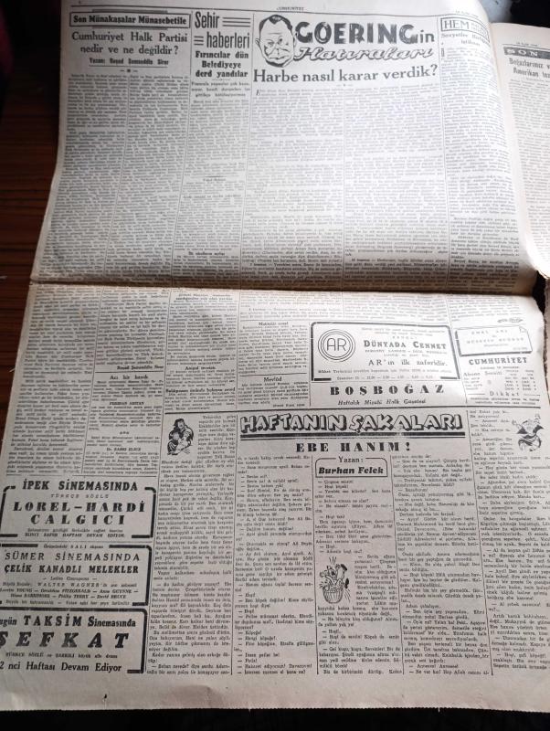 Cumhuriyet Gazetesi - 16 Eylül 1945 - Boğazlarımız Ve Amerikan Tezi Profesör Doktor Yavuz Abadan Köşe Yazısı - Irak Kral Naibi Geldi Fotoğraf - Amerikan Basını İngiltere'ye Yardım Edilmesi Aleyhinde - İstanbul Milletvekilleri Halkı Dinliyorlar - Acı Bir Kayıp Eczacı Hasan Dün Bir Kalp Krizi Neticesi Vefat Etti - Cemal Nadir Karikatür - Goering'in Hatıraları Yazı Dizisi - Haftanın Şakaları Yazan Burhan Felek - Lorel İle Hardi Çalgıcı Filmi İpek Sinemasında - Ciğerdelen Yazan Safiye Erol Yazı Dizisi - Beşinci Kol Saray Sinemasında - Zehra Bilir Ve İsmail Dümbüllü Beşiktaş Bahçesinde - Fenerbahçe Takımı Ajaks Futbolcularıyla Karşılaşıyor - Kira Kiralina Yazan Panait İstirati - Şişli Terakki Lisesi - Bugünkü Radyo Programı - Safiye Ayla Melahat İzmirli Ve Suzan Güven Cağaloğlu Çiftesaraylar Bahçesinde adlı eser, Kitap > Süreli Yayınlar > Gazeteler > Türkiye > Genel > Günlük kategorisinde İkinci El olarak satıştadır.