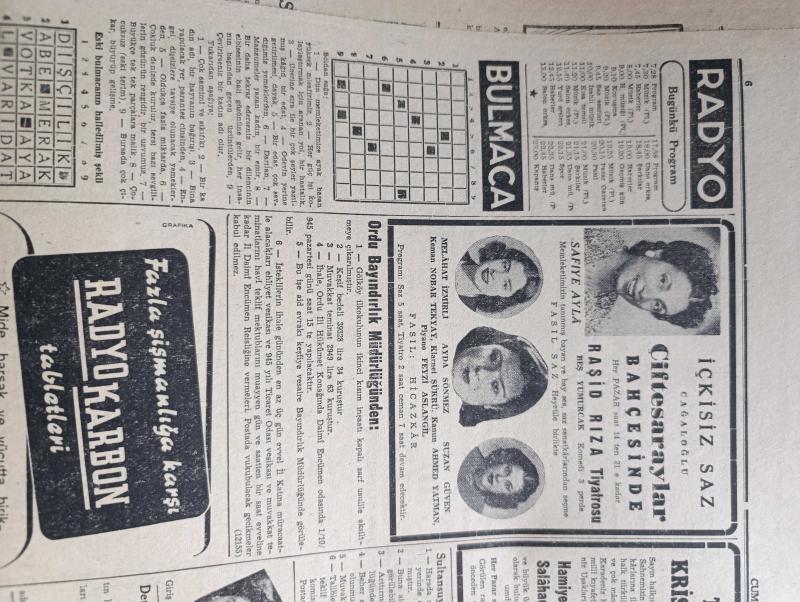 Cumhuriyet Gazetesi - 16 Eylül 1945 - Boğazlarımız Ve Amerikan Tezi Profesör Doktor Yavuz Abadan Köşe Yazısı - Irak Kral Naibi Geldi Fotoğraf - Amerikan Basını İngiltere'ye Yardım Edilmesi Aleyhinde - İstanbul Milletvekilleri Halkı Dinliyorlar - Acı Bir Kayıp Eczacı Hasan Dün Bir Kalp Krizi Neticesi Vefat Etti - Cemal Nadir Karikatür - Goering'in Hatıraları Yazı Dizisi - Haftanın Şakaları Yazan Burhan Felek - Lorel İle Hardi Çalgıcı Filmi İpek Sinemasında - Ciğerdelen Yazan Safiye Erol Yazı Dizisi - Beşinci Kol Saray Sinemasında - Zehra Bilir Ve İsmail Dümbüllü Beşiktaş Bahçesinde - Fenerbahçe Takımı Ajaks Futbolcularıyla Karşılaşıyor - Kira Kiralina Yazan Panait İstirati - Şişli Terakki Lisesi - Bugünkü Radyo Programı - Safiye Ayla Melahat İzmirli Ve Suzan Güven Cağaloğlu Çiftesaraylar Bahçesinde, Yunus Nadi tarafından kaleme alınmıştır. Cumhuriyet Gazetesi - 16 Eylül 1945 - Boğazlarımız Ve Amerikan Tezi Profesör Doktor Yavuz Abadan Köşe Yazısı - Irak Kral Naibi Geldi Fotoğraf - Amerikan Basını İngiltere'ye Yardım Edilmesi Aleyhinde - İstanbul Milletvekilleri Halkı Dinliyorlar - Acı Bir Kayıp Eczacı Hasan Dün Bir Kalp Krizi Neticesi Vefat Etti - Cemal Nadir Karikatür - Goering'in Hatıraları Yazı Dizisi - Haftanın Şakaları Yazan Burhan Felek - Lorel İle Hardi Çalgıcı Filmi İpek Sinemasında - Ciğerdelen Yazan Safiye Erol Yazı Dizisi - Beşinci Kol Saray Sinemasında - Zehra Bilir Ve İsmail Dümbüllü Beşiktaş Bahçesinde - Fenerbahçe Takımı Ajaks Futbolcularıyla Karşılaşıyor - Kira Kiralina Yazan Panait İstirati - Şişli Terakki Lisesi - Bugünkü Radyo Programı - Safiye Ayla Melahat İzmirli Ve Suzan Güven Cağaloğlu Çiftesaraylar Bahçesinde adlı eser Türkçe dilindedir.
