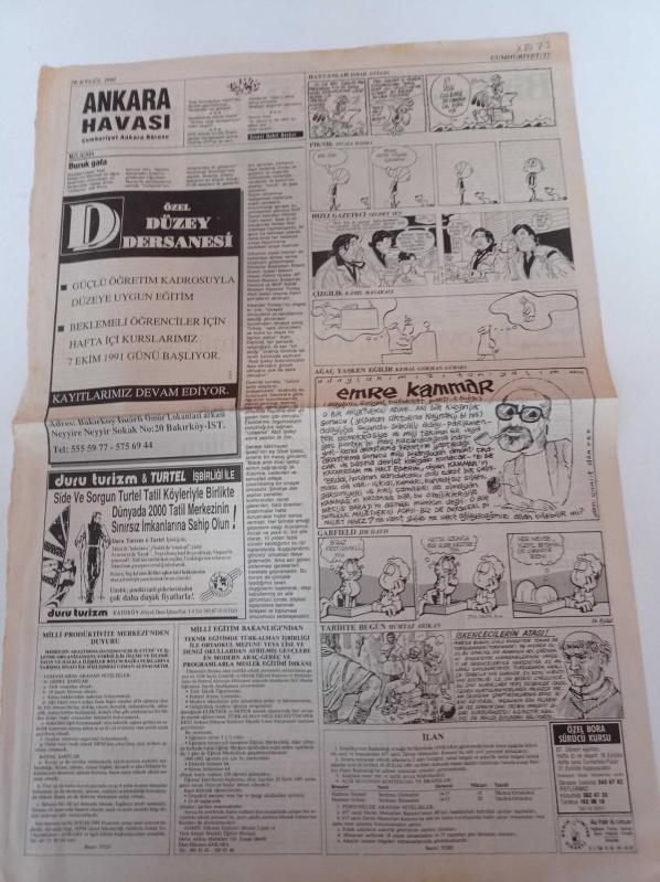 Cumhuriyet Gazetesi - 16 Eylül 1991 - Bir Başkadır Fenerbahçe Sevgisi - Aykut Kocaman - Arnavutlar Ancak Ödül Törenine Yetişti - Adana Demirspor - Mustafa Denizli Turu Rahat Geçeceğiz adlı eser Türkçe dilindedir.