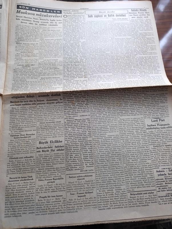 Cumhuriyet Gazetesi - 16 Haziran 1939 - Türk Mısır Paktı yazan Yunus Nadi Başmakale - icra kanunu değişiyor - Adliye Vekili Fethi Okyar gazetemize mühim beyanatta bulundu - Almanlar Slovakya'da büyük tahşidat yaptılar - Sırp Hırvat müzakereleri - Japonlar Tientsein'de İngiliz evlerinde taharriyat yaptılar - Mahfiruz Sultan Yazan Kadircan Kaflı Yazı Dizisi - Atatürk köprüsünün dubaları yerine kondu fotoğraf - uzakşark hadiseleri yazan Muharrem Fevzi Togay - Türkkuşu filosu Bursa'dan İzmir'e hareket etti - telefon mucidi Graham bell'in hayatı sinemaya alındı fotoğraf - Bu akşamki radyo programı - 23 Temmuz 1939 Türk günü bütün Amerika bugünü kutlamaya hazırlanıyor - Londra'dan mektup yazan Abidin Daver - Turgutlu mekteplerinde Kızılay teşkilatı fotoğraf - istişare heyeti Dolmabahçe Stadyumu planını tetkik ediyor fotoğraf - Galatasaray Beşiktaş'la yeniden karşılaşacak - uçurumda bir genç kız yazan Server Bedi yazı dizisi - boksör küçük Kemal Dün vefat etti - Eminönü'ndeki yeni saat Foto adlı eser, Kitap > Süreli Yayınlar > Gazeteler > Türkiye > Genel > Günlük kategorisinde İkinci El olarak satıştadır.