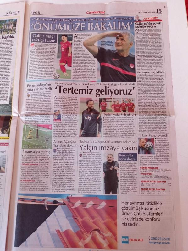 Cumhuriyet Gazetesi - 16 Haziran 2021 - Şenol Güneş - Sergen Yalçın - ABD 'de En İyi Film Ödülünü Atilla Taşkın'ım Emre Genç Bir Boksörün Hikâyesi Aldı - Müzisyen Selçuk Tekay Yaşamını Yitirdi - Sputnik V Aşısı Geldi - Türkiye'ye Yeni Rol - Recep Tayyip Erdoğan adlı eser Türkçe dilindedir.