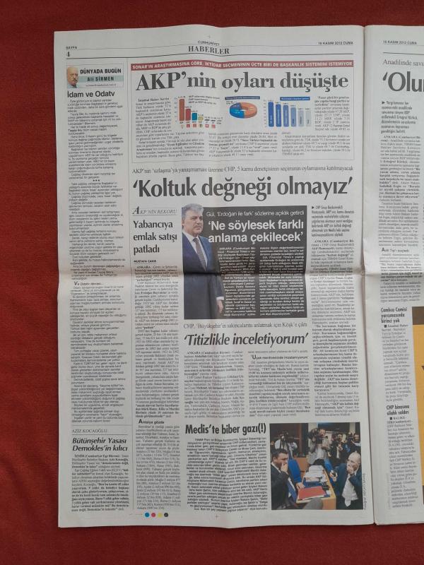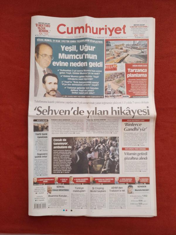 Kitap 2012 yılında yayınlanmıştır. 22 sayfadır. Cumhuriyet Gazetesi 16 Kasım 2012 Yeşil Uğur Mumcu'nun Evine Neden Geldi,Sehven'de Yılan Hikâyesi,Binlerce Gandhi'yiz,Tarzanca Planlama,AKP'nin Oyları Düşüşte,Avcı'nın Yaman Çelişkisi,Fenerbahçe'de Kocaman Sitem,Şike Davasında Flaş Karar,Recep Niyaz'la Altı Yıl Daha,Fenerbahçe Son Anda Yıkıldı adlı eser Türkçe dilindedir.