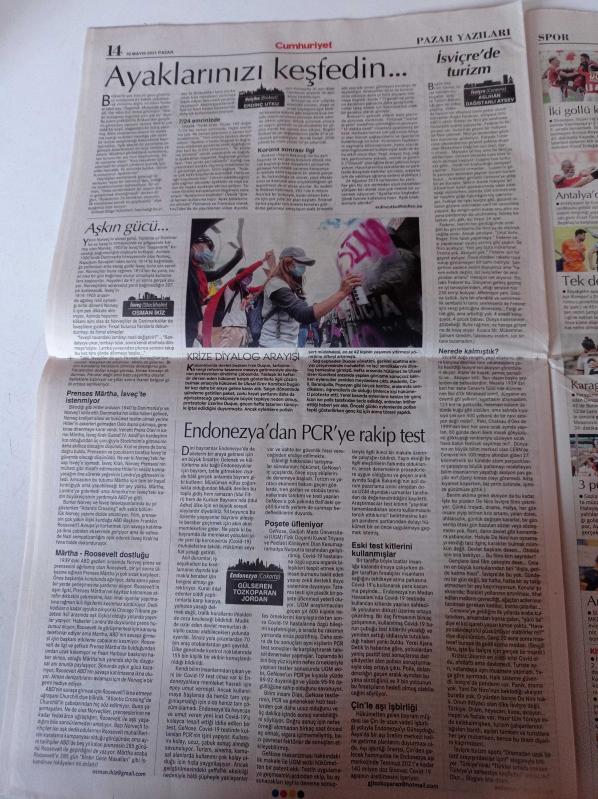 Cumhuriyet Gazetesi - 16 Mayıs 2021 - Süper Lig'in Kapanış Haftası - Galatasaray -: Endonezya'dan PCR'ye Rakip Test - Şampiyon Beşiktaş- Korunan Limanı Zararına Sattılar - Mülteci Kampı Vuruldu - Güçlü Meclis Güçlü AYM adlı eser Türkçe dilindedir.