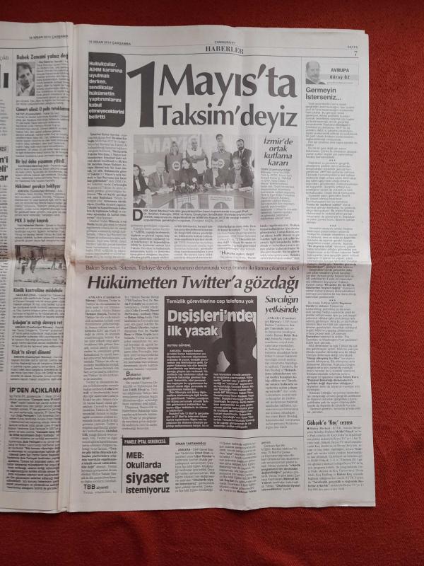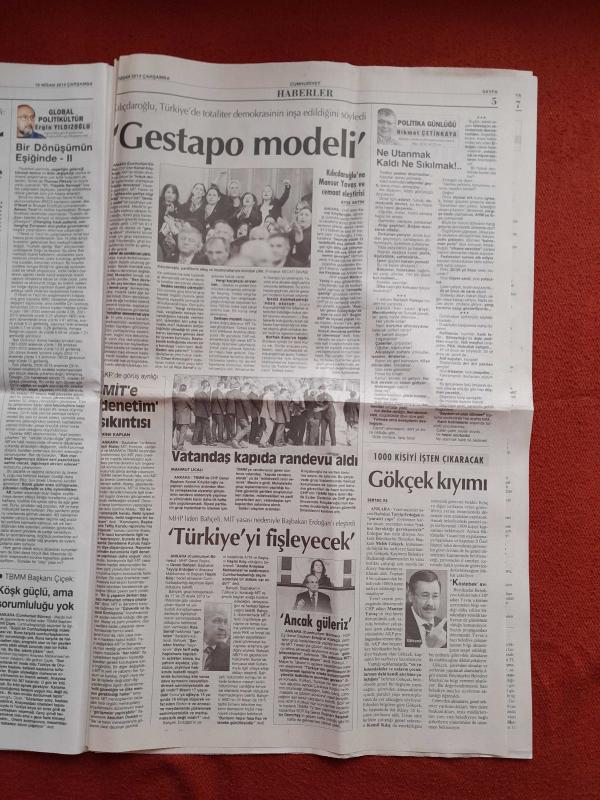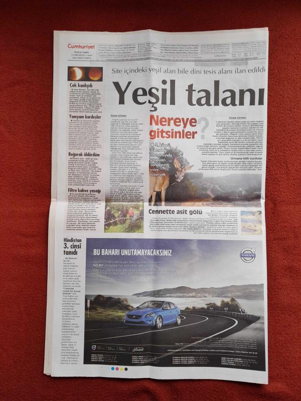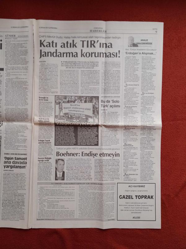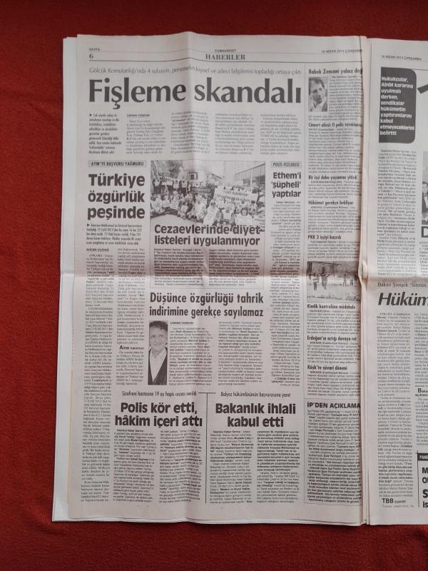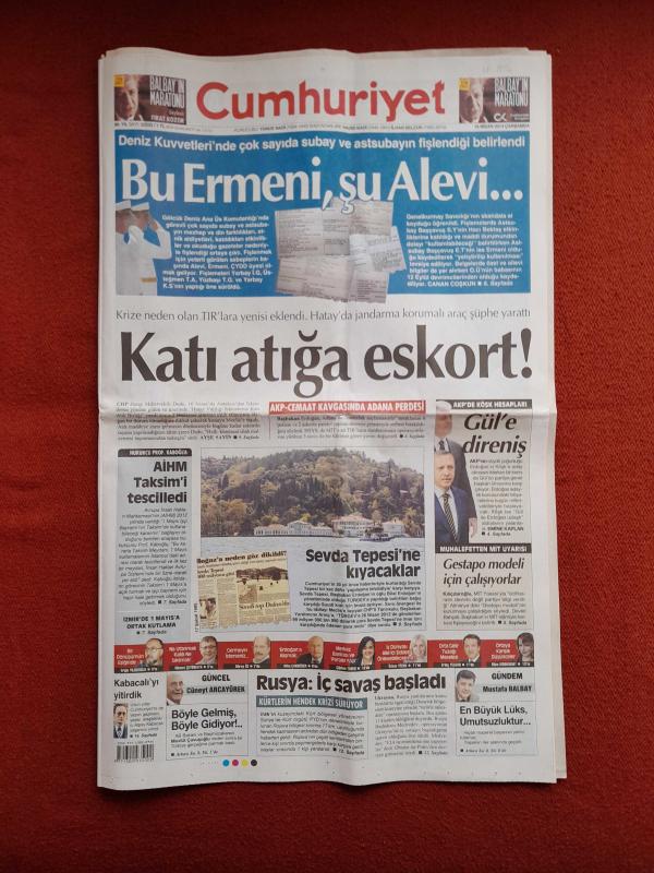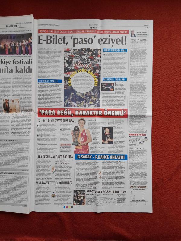 Kitap 2014 yılında yayınlanmıştır. 18 sayfadır. Cumhuriyet Gazetesi 16 Nisan 2014 Katı Atığa Eskort,Rusya: İç Savaş Başladı,AKP'de Gül'e Direniş De Var,TIR Savcılarına Geçici Sürgün,E-Bilet Paso Eziyeti,Para Değil Karakter Önemli,Galatasaray-Fenerbahçe Anlaştı adlı eser Türkçe dilindedir.
