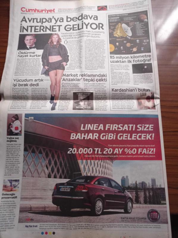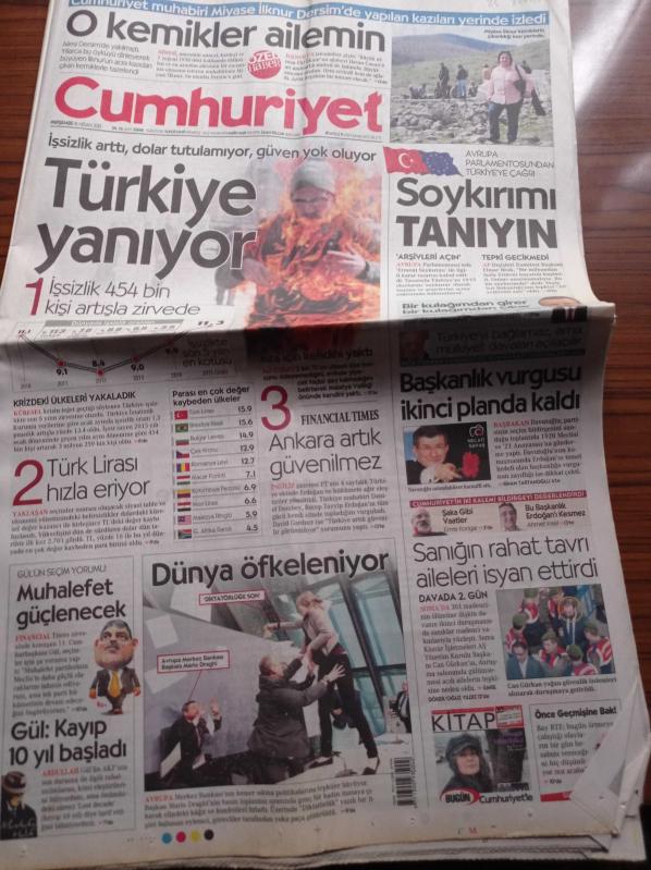 Cumhuriyet Gazetesi - 16 Nisan 2015 - Beşiktaş'ta Memurlar Kapıya Dayandı Kamyonlar İşi Şova Çevirdi - Avrupa'ya Bedava İnternet Geliyor - Miyase İlknur Dersim'de Yapılan Kazıları Yerinde İzledi - Türkiye Yanıyor İşsizlik Arttı Dolar Tutulamıyor - Avrupa Parlamentosundan Türkiye'ye Çağrı Soykırımı Tanıyın - Ahmet Davutoğlu - Soma'da 301 Madenci Davası - Abdullah Gül adlı eser Türkçe dilindedir.