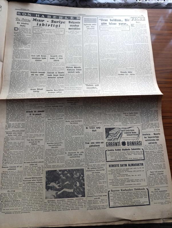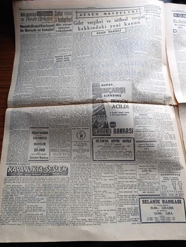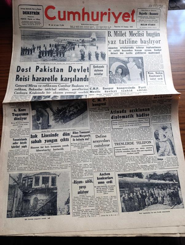 Cumhuriyet Gazetesi - 16 Temmuz 1956 - Dost Pakistan Devlet Reisi İskender Mirza Hararetle Karşılandı fotoğraf - Büyük Millet Meclisi Bugün Yaz Tatiline Başlıyor - Nixon Başkan Eisenhower'e İzahat Verdi - 6. Kore Tugayımız Dönüyor - Işık Lisesinde Dün Sabah Yangın Çıktı fotoğraf - Rüyam Kotrasının Sahibi Haşim Mardini Yarışı Anlatıyor - Define Arayıcıları Çoğalıyor - Trenlerde Telefon - Karanlıkta Sesler Yazan Perihan Zorlu Yazı Dizisi - Mustafa Kemal Rus Heyeti İle Havzada Ne Konuştu - Karamürsel Araba Vapurunun Tecrübeleri - İsviçre'de Başaşağı Otel İnşa Edildi - İzmir Fuarı Hazırlıkları - Stalin'in Gizli Cinayetleri - Emekli Orgeneral Cemil Cahid Toydemir'in Cenazesi Kaldırıldı - Boston Senfoni Orkestrası Avrupa'da Turneye Çıkıyor - Karacaoğlan Yazan Yaşar Kemal Resimleyen Münif Fehim Yazı Dizisi - Sarışın Bomba Marilyn Monroe Lady Macbeht'i Oynamak İstiyor fotoğraf - Atletizmde Erkeklerde Beşiktaş Kızlarda Kurtuluş Birinci Oldu - 11. Enternasyonal İstanbul Tenis Turnuvası adlı eser, Kitap > Süreli Yayınlar > Gazeteler > Türkiye > Genel > Günlük kategorisinde İkinci El olarak satıştadır.