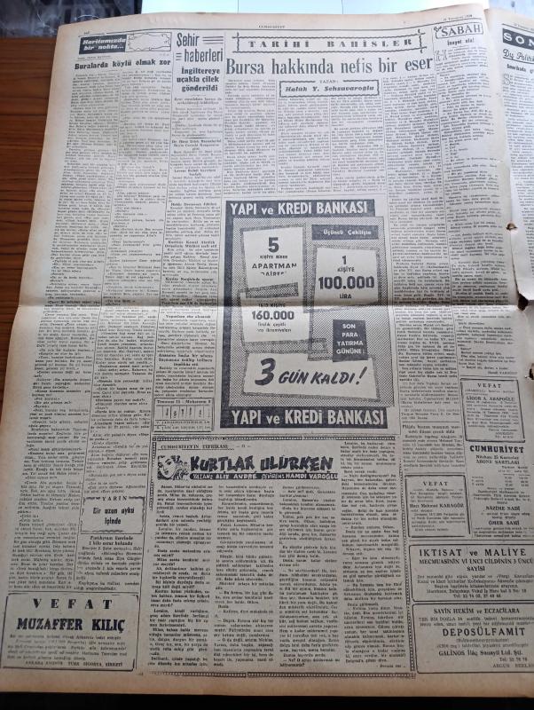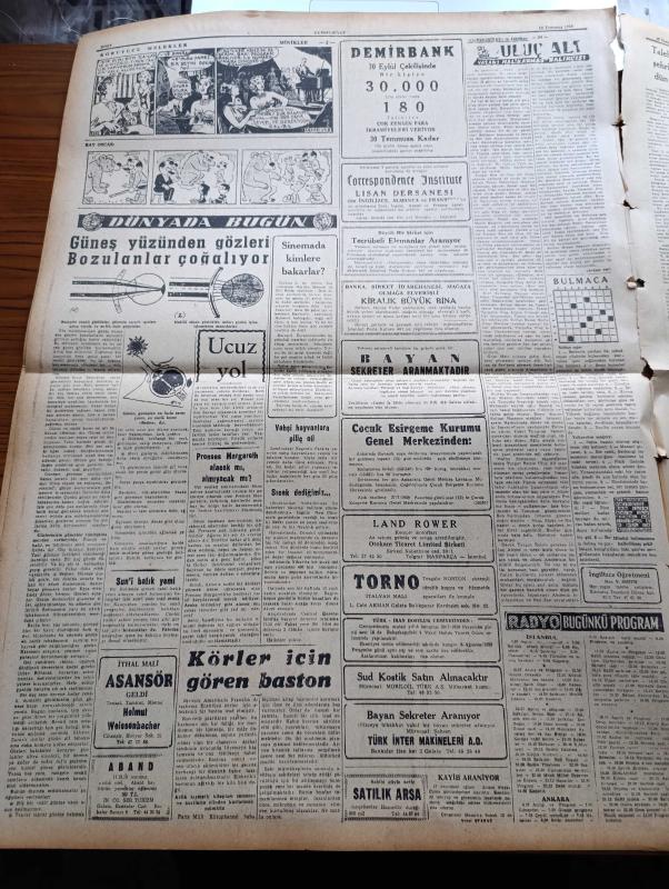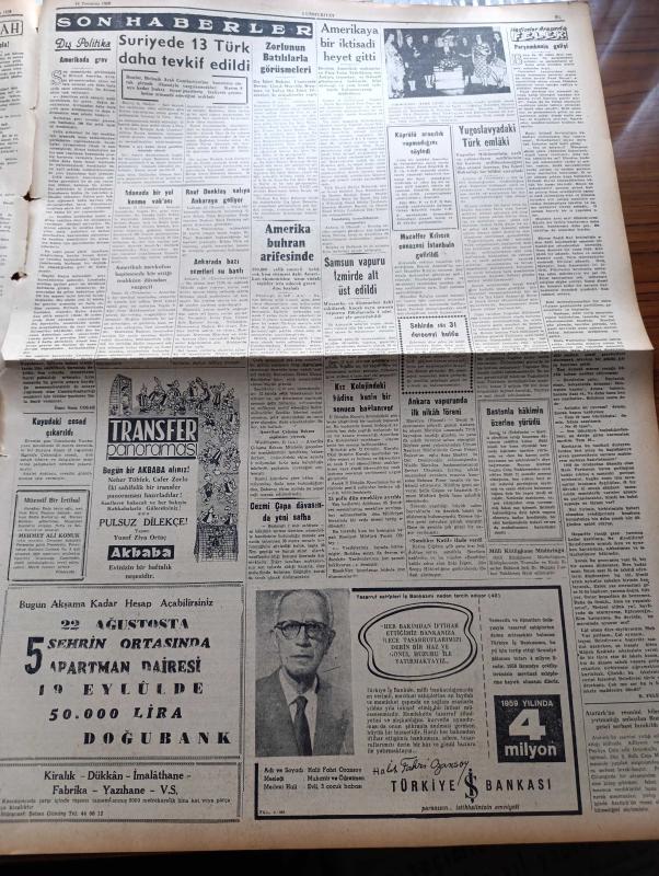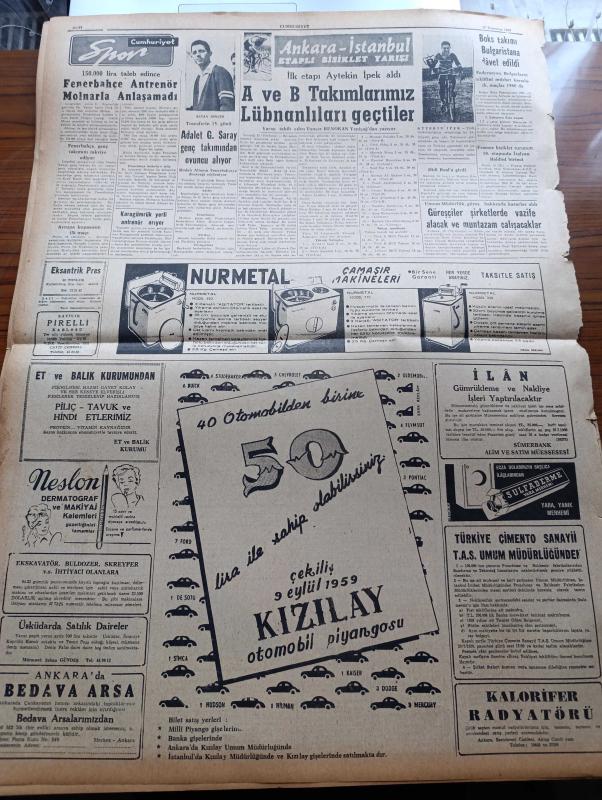 Cumhuriyet Gazetesi - 16 Temmuz 1959 - Meclis 33 Günlük Tatilden Sonra Çalışmalarına Başladı - Talebe Federasyonunun Şehrimizde Kongresini Polisler Dağıttı Yalçın Küçük'ü Götürdü - Gazeteci Şahap Balcıoğlu 1 Yıl 4 Ay Hapse Mahkum Oldu - Hasan Polatkan'a Yapılacak Ameliyat - Piyes Yazarı Ekrem Reşit Rey Toprağa Verildi - Turhal'da Kağıt Oyunları Yasak Edildi - Ankara'daki Spor Sarayı Neden Çöktü - Haritamızda Bir Nokta Yazan Fakir Baykurt Yazı Dizisi - Kurtlar Ulurken Yazan Alix Andre Yazı Dizisi - Vapurlara Ebe Alınacak - Burhan Felek Köşe Yazısı - Suriye'de 13 Türk Daha Tevkif Edildi - Rauf Denktaş Salıya Ankara'ya Geliyor - Uluç Ali Yazan Halikarnas Balıkçısı Yazı Dizisi - Demirbank - Koruyucu Melekler Çizgi Roman - Ankara İstanbul Etaplı Bisiklet Yarışı İlk Etapı Aytekin İpek Aldı - Fenerbahçe Antrenör Molnar İle Anlaşamadı - Meşhur Brezilyalı Didi Real Madrid'de - Modalı Altan Dinçer'in Fenerbahçe'ye Döneceği Söyleniyor - Avrupa Kupasının İlk Maçı Porto Kızılyıldız - Karagümrük, Yunus Nadi tarafından kaleme alınmıştır. Cumhuriyet Gazetesi - 16 Temmuz 1959 - Meclis 33 Günlük Tatilden Sonra Çalışmalarına Başladı - Talebe Federasyonunun Şehrimizde Kongresini Polisler Dağıttı Yalçın Küçük'ü Götürdü - Gazeteci Şahap Balcıoğlu 1 Yıl 4 Ay Hapse Mahkum Oldu - Hasan Polatkan'a Yapılacak Ameliyat - Piyes Yazarı Ekrem Reşit Rey Toprağa Verildi - Turhal'da Kağıt Oyunları Yasak Edildi - Ankara'daki Spor Sarayı Neden Çöktü - Haritamızda Bir Nokta Yazan Fakir Baykurt Yazı Dizisi - Kurtlar Ulurken Yazan Alix Andre Yazı Dizisi - Vapurlara Ebe Alınacak - Burhan Felek Köşe Yazısı - Suriye'de 13 Türk Daha Tevkif Edildi - Rauf Denktaş Salıya Ankara'ya Geliyor - Uluç Ali Yazan Halikarnas Balıkçısı Yazı Dizisi - Demirbank - Koruyucu Melekler Çizgi Roman - Ankara İstanbul Etaplı Bisiklet Yarışı İlk Etapı Aytekin İpek Aldı - Fenerbahçe Antrenör Molnar İle Anlaşamadı - Meşhur Brezilyalı Didi Real Madrid'de - Modalı Altan Dinçer'in Fenerbahçe'ye Döneceği Söyleniyor - Avrupa Kupasının İlk Maçı Porto Kızılyıldız - Karagümrük adlı eser Türkçe dilindedir.