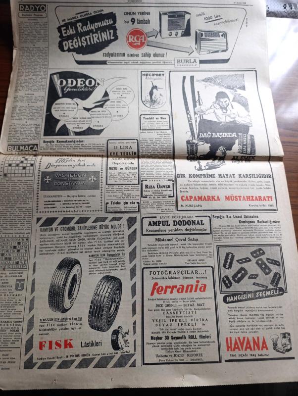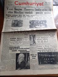 Cumhuriyet Gazetesi - 17 Aralık 1949 - söz ve iş yazan Nadir Nadi Başmakale - yeni seçim tasarısı Dün meclise verildi - Başbakan yardımcısı niyetim bugün tasarıya dair hükümetin görüşünü basına açıklayacak - emekliye ayrılmış olan generaller meselesi - Varna Stalin oluyor - komünist liderlerin Moskova toplantısı - Fenerbahçe First Vienna bugün karşılaşıyorlar fotoğraf - Moskova'da 3 yıl yazan Bedell Smith yazı dizisi - kitaplar arasında yazan A. Adnan Adıvar - haftalık zabıta mecmuası kelepçe - çam sakızı filmi dublaj rejisini idare eden Ferdi Tayfur Bugün İpek sinemasında - Amerika'nın sesinin Türkçe yayın programı - şamata yazan Burhan Felek - Bulgaristan eski başbakan muavini Kostov idam edildi - Turgut Reis yazan Halikarnas balıkçısı yazı dizisi - UNESCO radyoya zammı protesto ediyor - erkek liseleri arasındaki futbol maçları - Türkiye Garanti Bankası - Taksim Rumelihisarı arası otobüs meselesi - İstanbul Ankara radyo programı - RCA Radyo - odeon mağazaları - Necipbey kolonyaları adlı eser, Kitap > Süreli Yayınlar > Gazeteler > Türkiye > Genel > Günlük kategorisinde İkinci El olarak satıştadır.