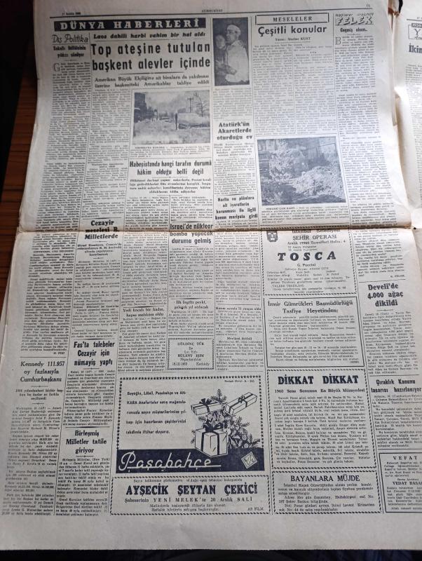 Cumhuriyet Gazetesi - 17 Aralık 1960 - Kurucu Meclis Kanunu Dün Meriyete Girdi - Nüfus Artışı İle İlgili Seminer - Şeyhlerle Ağaların Nakilleri Başladı - Yugoslav Peter Zaroviç Tankeri 48 Saat Yanacak fotoğraf - Topkapı Hadiseleri Duruşmasında Gazeteciler Şahitlik Ettiler - Ege Üniversitesi Öğrencileri De Cezayir Olaylarını Protesto Ettiler - Orman Yakma Ve Irza Geçme Suçları Kanun Tasarısı Milli Birlik Komitesi Genel Kurulunda - 10. Köy Yazan Fakir Baykurt Yazı Dizisi - Atatürk'ün Akaretlerde Oturduğu Ev - İsrail'de Nükleer Bomba Yapacak Duruma Gelmiş - Apikoğlu Sucuk - Ünlü Opera Sanatçısı Maria Callas fotoğraf - 1959 1960 Yunus Nadi Armağanı Dil Davamız İkinci Büyük Atılım Yazan Cemal Gürlek - 1958 Dünya Kupasını Kazanan Takım Brezilya Fotoğraf - Gündüz Kılıç'ın Unutamadığı An - Jeppson'a Göre En İyi 10 Takım - Atletico Madrid Garincha'ya 1,5 Milyon Veriyor - Fenerbahçe Feriköy Maçı - Galatasaray Kasımpaşa Maçı - galatasaraylılar dün yaptıkları son antrenmanda -Arçelik gaz sobası, Yunus Nadi tarafından kaleme alınmıştır. Cumhuriyet Gazetesi - 17 Aralık 1960 - Kurucu Meclis Kanunu Dün Meriyete Girdi - Nüfus Artışı İle İlgili Seminer - Şeyhlerle Ağaların Nakilleri Başladı - Yugoslav Peter Zaroviç Tankeri 48 Saat Yanacak fotoğraf - Topkapı Hadiseleri Duruşmasında Gazeteciler Şahitlik Ettiler - Ege Üniversitesi Öğrencileri De Cezayir Olaylarını Protesto Ettiler - Orman Yakma Ve Irza Geçme Suçları Kanun Tasarısı Milli Birlik Komitesi Genel Kurulunda - 10. Köy Yazan Fakir Baykurt Yazı Dizisi - Atatürk'ün Akaretlerde Oturduğu Ev - İsrail'de Nükleer Bomba Yapacak Duruma Gelmiş - Apikoğlu Sucuk - Ünlü Opera Sanatçısı Maria Callas fotoğraf - 1959 1960 Yunus Nadi Armağanı Dil Davamız İkinci Büyük Atılım Yazan Cemal Gürlek - 1958 Dünya Kupasını Kazanan Takım Brezilya Fotoğraf - Gündüz Kılıç'ın Unutamadığı An - Jeppson'a Göre En İyi 10 Takım - Atletico Madrid Garincha'ya 1,5 Milyon Veriyor - Fenerbahçe Feriköy Maçı - Galatasaray Kasımpaşa Maçı - galatasaraylılar dün yaptıkları son antrenmanda -Arçelik gaz sobası adlı eser Türkçe dilindedir.