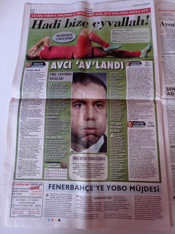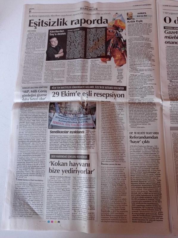Cumhuriyet Gazetesi - 17 Ekim 2012 - Potada Fenerbahçe Galatasaray Derbisi - Abdullah Avcı Avlandı - Hollanda Kunsthal Müzesinde Büyük Soygun - Bin Ladin Yöntemi - Uludere Faili Meçhul - Fazıl Say'a Alevilerden Destek - İktisatçı Tevfik Çavdar'ı Kaybettik adlı eser Türkçe dilindedir.