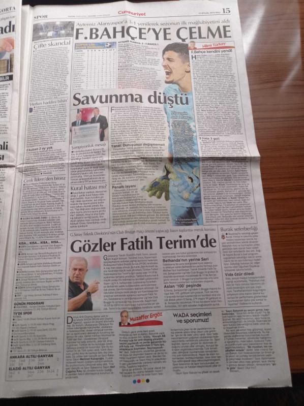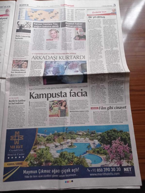 Cumhuriyet Gazetesi - 17 Eylül 2019 - Cenk İldem'den Bronz - TRT'de Oyun Üstüne Oyun - Tarihi Köşkte Zirve - İran Cumhurbaşkanı Ruhani Rusya Devlet Başkanı Putin Ve Cumhurbaşkanı Recep Tayyip Erdoğan Biraraya Geldi - Tarık Akan Unutulmadı - Velilerin Menzil Tarikatı Baskısına Karşı Direnci Karşılık Buldu adlı eser Türkçe dilindedir.