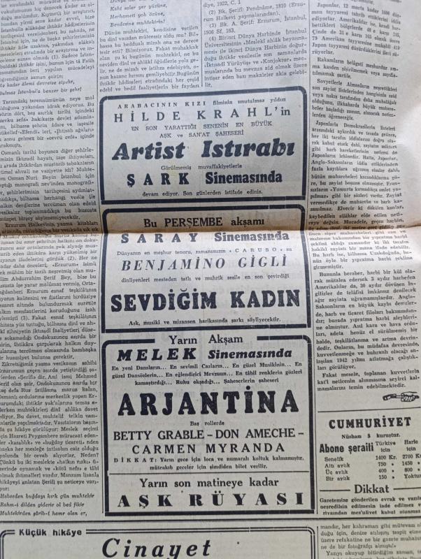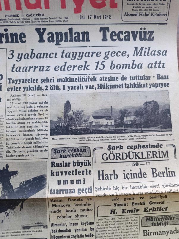 Cumhuriyet Gazetesi - 17 Mart 1942 - Hindiler Ait Bir Hatıra Yazan Yunus Nadi Köşe Yazısı - Bir Türk Şehrine Yapılan Tecavüz - 3 Yabancı Tayyare Gece Milasa Taarruz Ederek 15 Bomba Attı Fotoğraf - Millet Meclisi Açıldı - İngilterenin Hindistan Kral Naibi Lord linlitggow - 16 Mart Anması Dün Yapıldı Fotoğraf - Şark Cephesinde Gördüklerim Yazan Emekli General H. Erkilet Yazı Dizisi - Şark Cephesinden Resimler - Manisa Mebusu Refik İnce'nin İki Takriri - İhtikar Ve Edebiyat Yazan Ziyaeddin Fahri - Kıskanç İpek Sinemasında - Artist Istırabı Şark Sinemasında - Arjantina Yarın Akşam Melek Sinemasında - Fener Patrikhanesindeki Yangın Davası - Büyük İnönü Koşusu - Kleopatra Bu Perşembe Lale Sinemasında - Sızı Yazan Mükerrem Kamil Su Yazı Dizisi - Sevinilecek Bir Aydınlanma Yazan Burhan Felek Köşe Yazısı - Yeni Blaupunkt Radyoları Gelmiştir - Gripin - Bulmaca - Bugünkü Radyo Programı - Poker Traş Bıçağı - Haydar Rifatın Eserleri - Singer Saat Mağazaları - İzona Saç Sabunu adlı eser, Kitap > Süreli Yayınlar > Gazeteler > Türkiye > Genel > Günlük kategorisinde İkinci El olarak satıştadır.