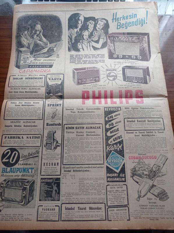Cumhuriyet Gazetesi - 17 Mart 1953 - Mareşal Tito Dün İngiltere'ye Vardı - Çanakkale Haftası - Tarabyada Mucize İle Biten Otomobil Kazası - İnsana Benzeyen Bir Ağaç Bulundu - Faruğun Eski Kraliçe Neriman'a açık Mektubu - New Moon Tatbikatı - Mısır'da Neler Oluyor - Nadir Nadi - Esad Tekeli - Hüsnü Sadık Durukal - 3 Kadın Romanı Yazan Peride Celal Yazı Dizisi - Burhan Felek - 16. Milletlerarası Santranç Turnuvası - İstanbul Golf Kulübü - Ordulararası Futbol Karşılaşmaları - Türkiye'nin En Meşhur Kadın Casusu Yazı Dizisi - Geçmişte Büyük Cinayetler Yazı Dizisi - Radyolin Diş Macunu - Hikaye Artistler Kapısı - Philips Radyo - Çapamarka - Tokat Çoban Sucuğu - Varta Akümülatörü - Blaupunkt Radyo adlı eser, Kitap > Süreli Yayınlar > Gazeteler > Türkiye > Genel > Günlük kategorisinde İkinci El olarak satıştadır.