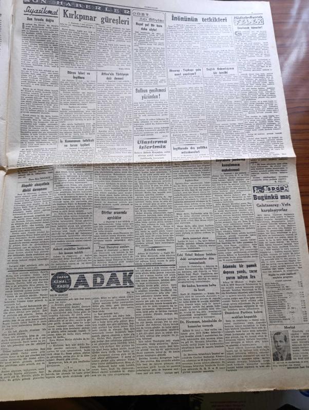 Cumhuriyet Gazetesi - 17 Mayıs 1947 - Sulhun Gecikmesi Yüzünden Köşe Yazısı - Truman Bugün Yardım Tasarısını İmza Ediyor - Cumhurbaşkanı İsmet İnönü Dün Erkek Sanat Okulunu Kızılay Aşamasını Ve Cerrahpaşa Hastanesini Gezdi Fotoğraf - Hayrabolu Jandarma Komutanı Yüzbaşı Ali Ertan'ın Muhakemesi - Kırkpınar Güreşlerine Katılacak Pehlivanlar Fotoğraf - Aksaray Topkapı Yolu Nasıl Yapılıyor - Dün İnönü Stadında Yapılan 19 Mayıs Provaları - Ölümünün 67. Yıldönümünü Vesilesiyle Şair Ziya Paşa Yazan Taha Toros - Sosyalist İngiltere'nin 1947 Senesi Bütçesi - Markopaşa Gazetesi Kapatıldı - Türkçe Sözlü Şark Dramı Naime Şark Sinemasında - Bolşevikler Açık Ve Dürüst Konuşabilir Mi - Adak Yazan Kemal Ragıp Yazı Dizisi - Şaşılacak Hünerler Yazan Burhan Felek Köşe Yazısı - Galatasaray Vefa Karşılaşıyor - Doktor Hermann İstanbul'da Konserler Verecek - Eski Tekel Ve Gümrük Bakanı Suad Hayri Ürgüplü Hakkımdaki Soruşturmalar Açıldı - Bugünkü Radyo Programı - Bulmaca - Seiberling Lastikleri - Zehra Bilir adlı eser, Kitap > Süreli Yayınlar > Gazeteler > Türkiye > Genel > Günlük kategorisinde İkinci El olarak satıştadır.