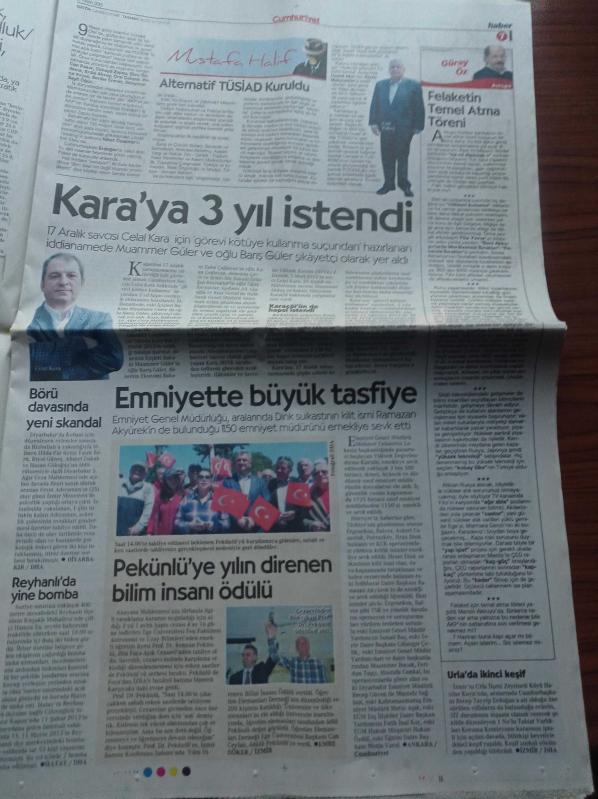 Cumhuriyet Gazetesi - 17 Nisan 2015 - Reza Zarrab Beşiktaş Takımından Loca Almış - Alternatif TÜSİAD - Vergi Nedeniyle ABD Vatandaşlığından Çıkan Ömer Faruk Kalyoncu Kim - 17 Aralık'ın İki Yüzü - Ethem Mahçupyan'a Soykırım Cezası - Gezi'deki Çadırlar Mumdan Yanmış - Ali Ağaoğlu'ndan Küfürlü Baskın adlı eser Türkçe dilindedir.