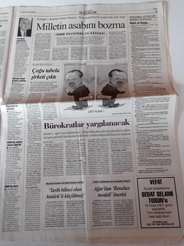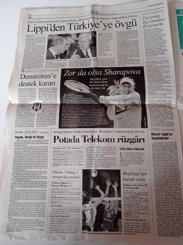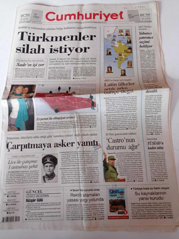 Cumhuriyet Gazetesi - 17 Ocak 2007 - Marcello Lippi'den Türkiye'ye Övgü - Zor Da Olsa Sharapova - Vatan Computer - Allianoi'de İnsanlık Suçu - Ödüller Kraliçe'ye- Fidel Castro'nun Durumu Ağır - Şehit Kubilay Saldırısı Planlı - Türkmenler Silah İstiyor - Erzurum'da Olimpiyat Sevinci adlı eser Türkçe dilindedir.