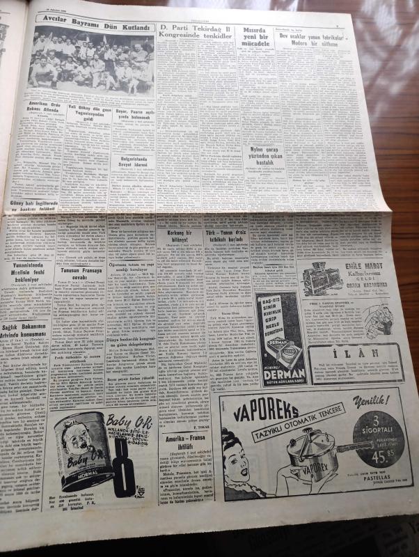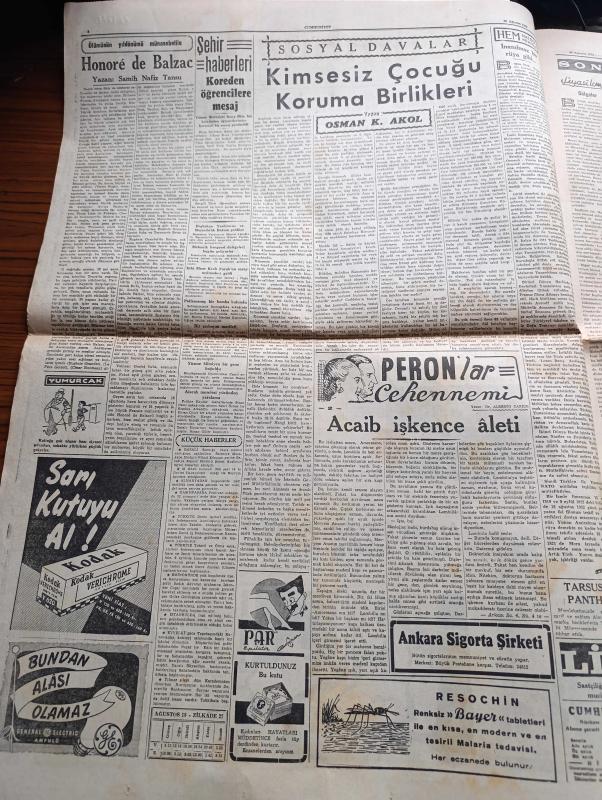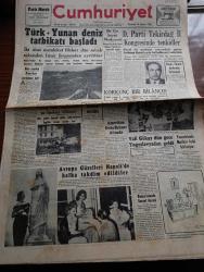 Cumhuriyet Gazetesi - 18 Ağustos 1952 - Türk Yunan Deniz Tatbikatı Başladı - Bize Yapılan Amerikan Yardımına Dair - 1952 Yılının 6 Ayında Yurdumuzda Taşıt Kazaları Yüzünden 440 Kişi Öldü - Celal Bayar İzmir Fuarının Açılışında Bulunacak - Vali Fahrettin Kerim Gökay Dün Gece Yugoslavyadan Geldi - Avrupa Güzelleri Napoli'de Halka Takdim Edildiler Fotoğraf - Ölümünün Yıldönümü Münasebetiyle Honore De Balzac Yazan Samih Nafiz Tansu - Kore'den Öğrencilere Mesaj - Peron'lar Cehennemi Yazan Doktor Alberto Caride Yazı Dizisi - Ruh Gurbetinde Yazan Kerime Nadir Yazı Dizisi - Son Osmanlı Padişahı Vahdeddin'in Kızı Ulviye Geldi Fotoğraf - Artık Konuşuyorum Yazan Burhan Felek Köşe Yazısı - Fenerbahçe Stadında Dünkü Spor Bayramı - Bugünkü Radyo Programı - İpana Diş Macunu - Günseli Başar Napoli'de Halka Takdim Edilirken Fotoğraf- Bendix Otomatik Çamaşır Kurutma Ve Ütü Makineleri - Avcılar Bayramı Dün Kutlandı - 1952 Pontiac Araba - Hofherr Traktörleri adlı eser, Kitap > Süreli Yayınlar > Gazeteler > Türkiye > Genel > Günlük kategorisinde İkinci El olarak satıştadır.
