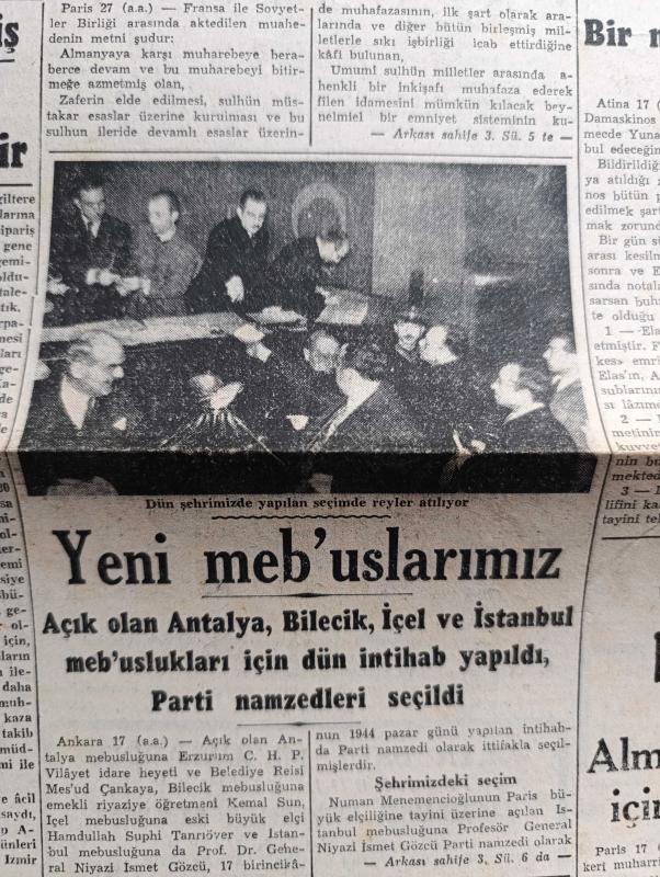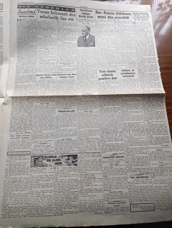 Cumhuriyet Gazetesi - 18 Birincikanun (Aralık) 1944 - Yeni Sipariş Edilecek Gemilere Dair Yazan Abidin Daver Köşe Yazısı - Rus Fransız İttifakının Metni Dün Neşredildi - Yunan Hükümeti Dün Seferberlik İlan Etti - Sicilya'da İsyan Çıktı Belediye Adliye Maliye Binaları Yağma Edildi - Siegfried Hattında Büyük Topçu Düellosu - Macaristan'da Sovyetler İki Şehir Daha Aldılar - Dün Yapılan Lig Maçları Ve Kır Koşuları - Beşiktaş Beykoz Maçından Bir Sahne Fotoğraf - Fenerbahçe Vefa'yı 4 1 Yendi - Yeni Mebuslarımız - İstanbul Boks Şampiyonasının Final Maçları Tehir Edilmelidirler - Ayakta Dinlenmenin Tatlı Uykuya Dalmanın Sırları Yazan Rusçuklu Hakkı - İsviçre'de Yeni Bir İş Kanunu Hazırlanıyor Yazan Ahmed Halil - Şef Cemil Türk Arman Konseri - Meşum Fahişe Lale Sinemasında - Hindistan'ın İstikbali Yazan Ömer Rıza Doğrul Köşe Yazısı - Ankara At Yarışlarının Neticeleri - Burhan Felek Köşe Yazısı - Hasan Limon Kolonyası - Bugünkü Radyo Programı - Ses Opereti Tiyatrosu - Tural Öksürüğü Keser, Yunus Nadi tarafından kaleme alınmıştır. Cumhuriyet Gazetesi - 18 Birincikanun (Aralık) 1944 - Yeni Sipariş Edilecek Gemilere Dair Yazan Abidin Daver Köşe Yazısı - Rus Fransız İttifakının Metni Dün Neşredildi - Yunan Hükümeti Dün Seferberlik İlan Etti - Sicilya'da İsyan Çıktı Belediye Adliye Maliye Binaları Yağma Edildi - Siegfried Hattında Büyük Topçu Düellosu - Macaristan'da Sovyetler İki Şehir Daha Aldılar - Dün Yapılan Lig Maçları Ve Kır Koşuları - Beşiktaş Beykoz Maçından Bir Sahne Fotoğraf - Fenerbahçe Vefa'yı 4 1 Yendi - Yeni Mebuslarımız - İstanbul Boks Şampiyonasının Final Maçları Tehir Edilmelidirler - Ayakta Dinlenmenin Tatlı Uykuya Dalmanın Sırları Yazan Rusçuklu Hakkı - İsviçre'de Yeni Bir İş Kanunu Hazırlanıyor Yazan Ahmed Halil - Şef Cemil Türk Arman Konseri - Meşum Fahişe Lale Sinemasında - Hindistan'ın İstikbali Yazan Ömer Rıza Doğrul Köşe Yazısı - Ankara At Yarışlarının Neticeleri - Burhan Felek Köşe Yazısı - Hasan Limon Kolonyası - Bugünkü Radyo Programı - Ses Opereti Tiyatrosu - Tural Öksürüğü Keser adlı eser Türkçe dilindedir.