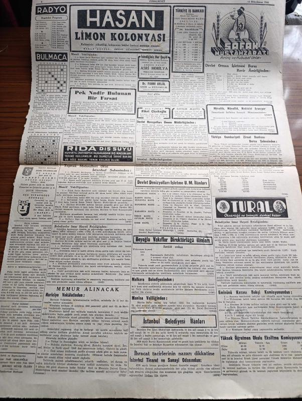 Sayfa Boyutu : 42*58 cm Sayfa Sayısı: 4 Cumhuriyet Gazetesi Yıpranma, sararmalar, kupon kesiği ve yırtılmalar zamana bağlı olarak görülebilir Bilgilendirme : Tam takım gazetedir