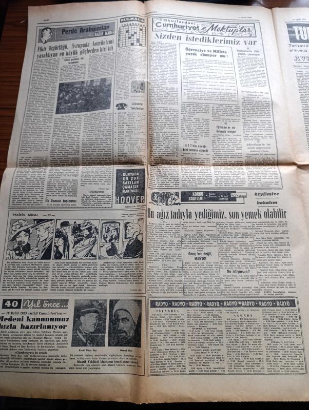 Cumhuriyet Gazetesi - 18 Eylül 1964 - Güvenlik Konseyi Kıbrıs İhtilafını Görüşmeye Devam Etti - İçişleri Bakanı Orhan Öztrak Yunan Uyrukluların İkamet Süresi Uzatılamaz Ve Uzatılmayacaktır Dedi - Makarios Yunan Kralının Düğününe Siyaset Karıştırdı - Toprak Reformu Tasarısı Bu Hafta Bakanlar Kurulunda Görüşülecek - Azapkapı'da Yarım Yonca Şeklinde Geçit Yapılıyor - Adalet Bakanı Sedat Çumralı Siyasi Af Yok Ama Hasta Mahkumlar Bırakılabilir - Gözlük Ve Çizme Yazan İlhan Selçuk Köşe Yazısı - Bir Acı Şarkı Yazan Cronin Yazı Dizisi - Fidel Castro Batırılan İspanyol Gemisinin Sorumluluğunu Amerika'ya Yüklüyor - Bay Oscar Karikatür - Profesör Nimbüs'ün Maceraları Çizgi Roman - Perde Aralığından Yazan Nadir Nadi Yazı Dizisi - Balkan Melodileri Festivali - Türk Solisti Tülay German Fotoğraf- Hollanda'daki Maçtan Sonra Fenerbahçeliler Tartaklandı - Fenerbahçe Kulüp Başkanı İsmet Uluğ Maç Tekrarlanacak Dedi - Galatasaray Aufbau'yu Kupadan Silemedi 1 1 - Avrupa Şampiyon Kulüpler Kupa Galipleri adlı eser, Kitap > Süreli Yayınlar > Gazeteler > Türkiye > Genel > Günlük kategorisinde İkinci El olarak satıştadır.