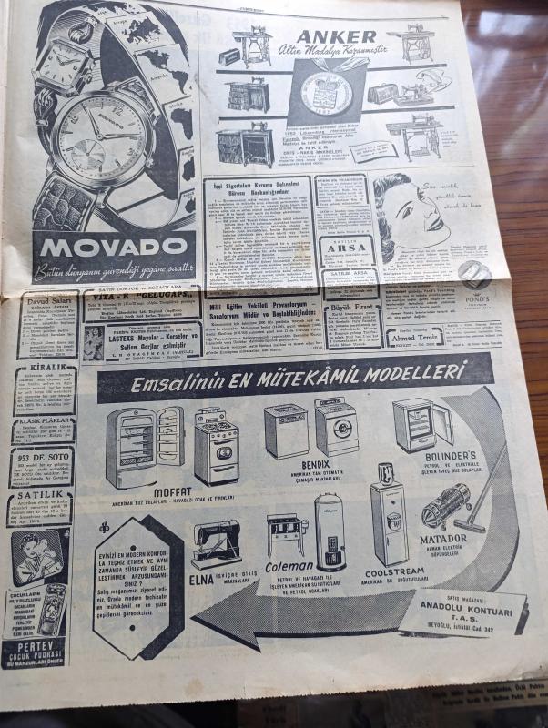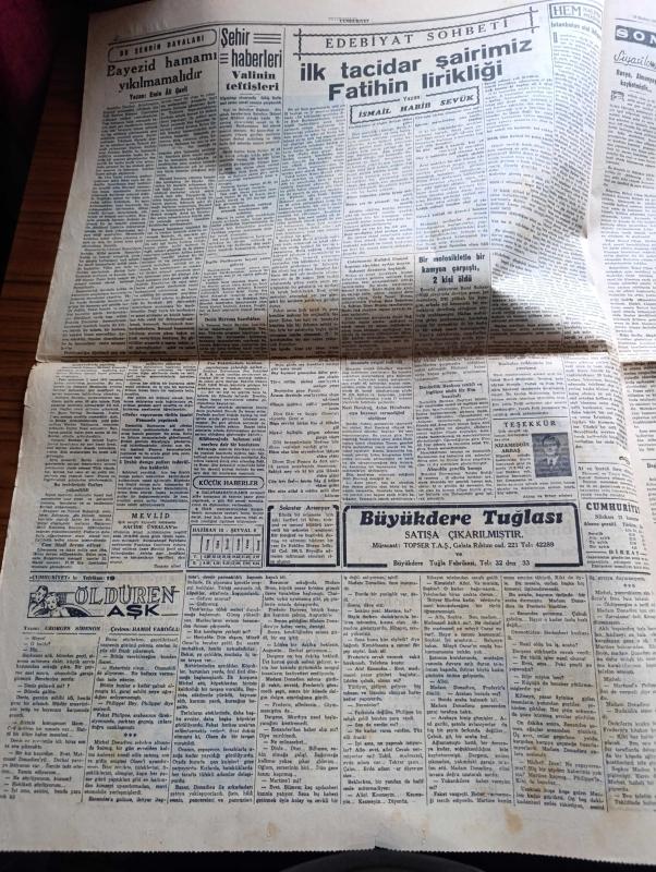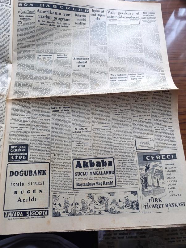 Cumhuriyet Gazetesi - 18 Haziran 1953 - Adnan Menderes dün Mareşal Papagos ile görüştü fotoğraf - 1953 güzellik müsabakasının ilk seçmesi dün yapıldı - güzeller sahne arkasında ve heyecan içinde sıralarını beklerlerken fotoğraf - Jüri azasından 1952 Avrupa güzeli Günseli Beydeş yanında eşi olduğu halde güzelleri tetkik ediyor fotoğraf - Doğu Almanya'da çıkan isyan süratle genişliyor - Kore'de çarpışmalar birdenbire durdu - Doğu Almanya başbakan yardımcısı Grottewohl isyan eden işçiler tarafından Amerikan kesimine sürüldü - Beyazıt hamamı yıkılmamalıdır yazan Emin Ali Çavli - Galatasaray Kulübü umumi kaptanı Kadir Dağ aleyhine açılan dava - Rami göçmen Mahallesi'nde sağlık kontrolleri - Cennet Yolu yazan Steinbeck Yazı Dizisi - Lefter Küçükandonyadis'in hangi takımda oynayacağı belli değil - Beşiktaş Danimarka takımı Fionie'yi Yendi - Piç Kurusu Yazan Azmiye Hami Güven Yazı Dizisi - 1953 güzellik müsabakasının dünkü ilk seçmesinden intibalar fotoğraflar - Gülyüz Okçu Sahnede Fotoğrafı adlı eser, Kitap > Süreli Yayınlar > Gazeteler > Türkiye > Genel > Günlük kategorisinde İkinci El olarak satıştadır.