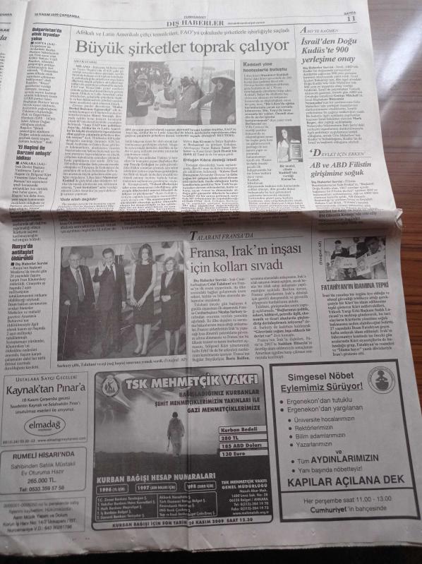 Cumhuriyet Gazetesi - 18 Kasım 2009 - Nerede Fenerbahçe Galatasaray Arasındaki Renk Kardeşliği - Türkiye Partisi Genel Başkanı Abdüllatif Şener Kurumların Genetiğini Bozuyorlar - ÖDP Genel Başkanı Alper Taş - Recep Tayyip Erdoğan Birleşmiş Milletler Zirvesinde - İmralı'ya Beş Mahkum - DTP Lideri Ahmet Türk - Yargıya Ve Ülkene Sahip Çık Yürüyüşü adlı eser Türkçe dilindedir.