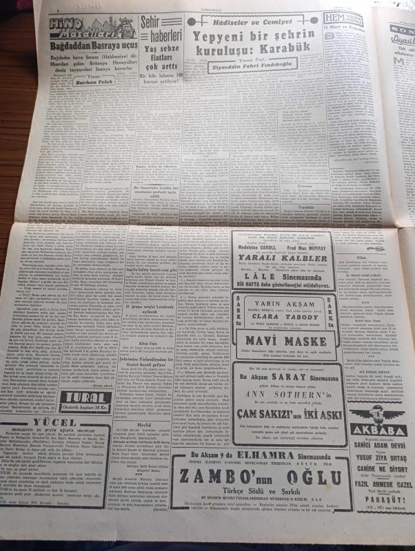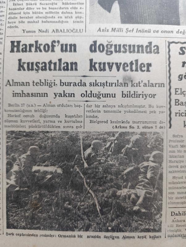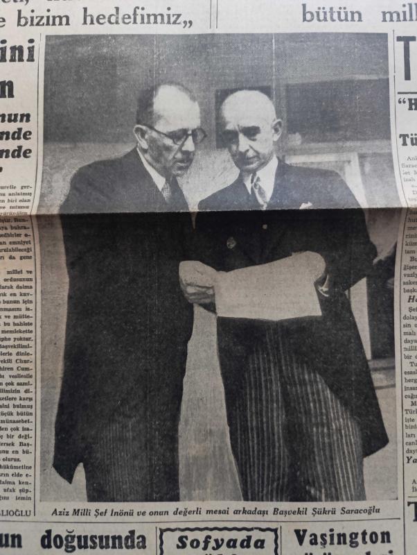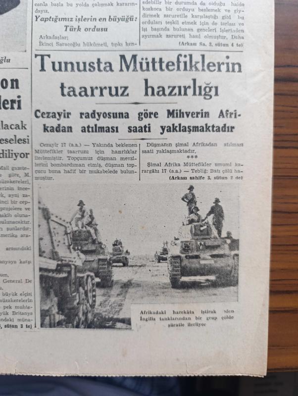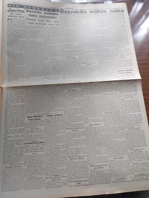 Cumhuriyet Gazetesi - 18 Mart 1943 - nutkun değerini anlamak için yazan Yunus Nadi Abalıoğlu Başmakale - başvekil Şükrü Saraçoğlu'nun mühim nutku - Başvekil Şükrü Saracoğlu Mesut bir Türk milleti kuvvetli bir Türk devleti işte bizim hedefimiz dedi - Aziz milli İsmet İnönü ve onun değerli mesai arkadaşı Şükrü Saraçoğlu fotoğraf - Harkof'un doğusunda kuşatılan kuvvetler - ormanlık bir arazide ilerleyen Alman keşif kolları fotoğraf - Bulgaristan Türkiye elçisi Vasfi Menteşi Bulgar başvekili ve hariciyesi ile mülakatları yaptı - Washington'da Avrupa'da açılacak ikinci cephe meselesi de müzakere ediliyor - tunus'ta müttefiklerin taarruz hazırlığı - Afrika'daki harekata iştirak eden İngiliz tanklarından bir grup çölde süratle ilerliyor fotoğraf - Hint masalları yazan Burhan Felek - yepyeni bir şehrin kuruluşu Karabük yazan Profesör Ziyaettin Fahri Fındıkoğlu - yaralı kalpler filmi Lale sinemasında - Çanakkale zaferinin yıldönümü - De Gaulle Cezayir yolunda - Alman denizaltıları adlı eser, Kitap > Süreli Yayınlar > Gazeteler > Türkiye > Genel > Günlük kategorisinde İkinci El olarak satıştadır.