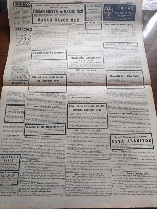 Sayfa Boyutu : 42*58 cm Sayfa Sayısı: 4 Cumhuriyet Gazetesi Yıpranma, sararmalar, kupon kesiği ve yırtılmalar zamana bağlı olarak görülebilir Bilgilendirme : Tam takım gazetedir