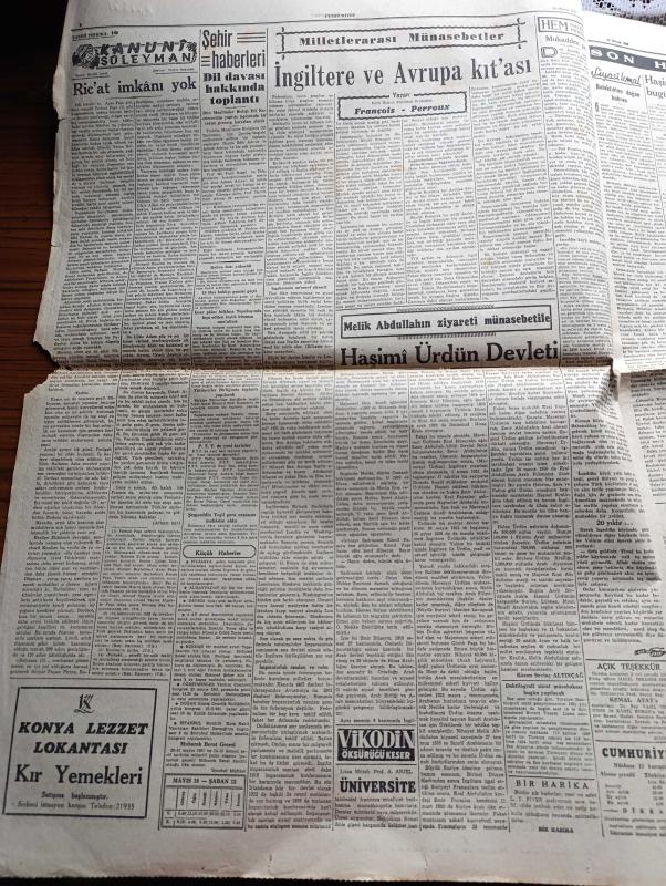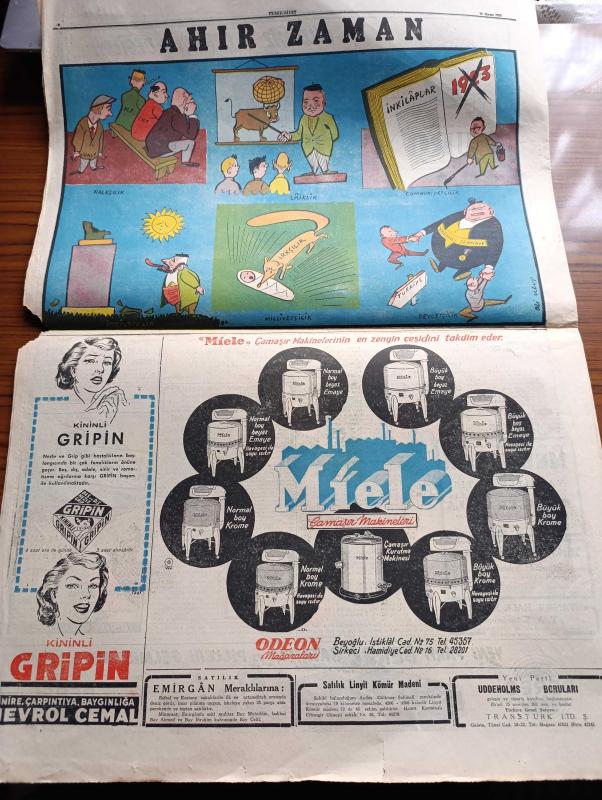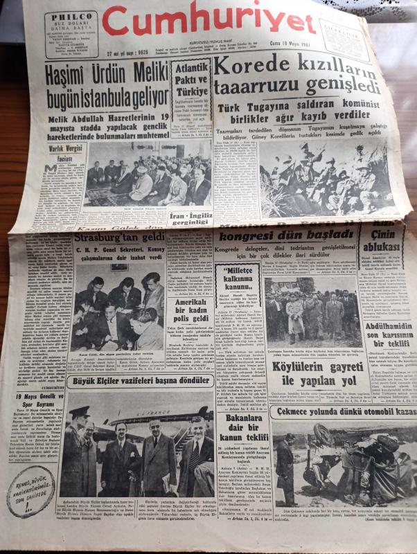 Cumhuriyet Gazetesi - 18 Mayıs 1951 - Varlık Vergisi Faciası Köşe Yazısı - Haşimi Ürdün Meliki Bugün İstanbul'a Geliyor - Atlantik Paktı Ve Türkiye - 19 Mayıs Gençlik Ve Spor Bayramı - Kore'de Kızılların Taarruzu Genişledi - Kasım Gülek Dün Strazburg'tan Geldi - Amerikalı Elizabeth Buckley Adında bir Kadın Polis Geldi - Abdülhamid'in Son Karısı Dördüncü Kadınefendi'nin Bir Teklifi - Türk Tugayına Saldıran Komünist Birlikler Ağır Kayıp Verdiler - Kanuni Süleyman Yazan Harold Lamb Yazı Dizisi - Dil Davası Hakkında Toplantı - Suriye İsrail İhtilafı - Nasibe Subaşı Ağahan Ve Eşi Bir Arada - Devlet Operası Sanatkarları Bugün Geliyor - Bahar Turnuvası Futbol Maçları - 1 Temmuz Denizcilik Bayramı Münasebetiyle Bir Teklif - Yugoslav Hajduk Takımının Vefa Ve Galatasarayla Yapacağı Maçların Biletleri - Kadın Gazeteci Lil'in Maceraları Çizgi Roman - Perihan Sözeri Sabite Tur Ve Hamiyet Yuceses Tepebaşı Bahçesinde - Odeon Mağazaları - Ahir Zamanı Karikatür - Gripin adlı eser, Kitap > Süreli Yayınlar > Gazeteler > Türkiye > Genel > Günlük kategorisinde İkinci El olarak satıştadır.
